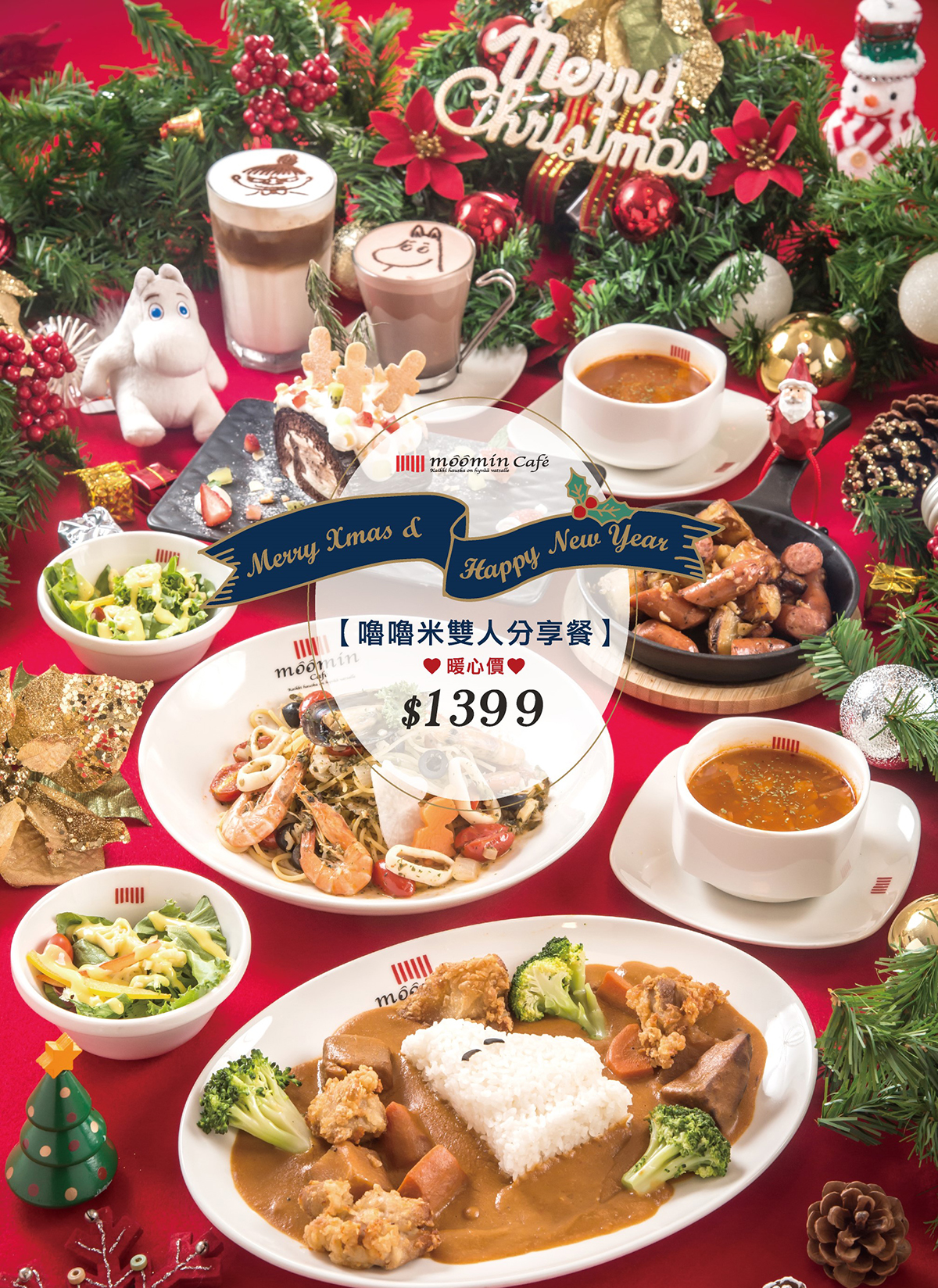 聖誕跨年限定的「嚕嚕米雙人分享餐」將於12月9日登場,今年聖誕節就到嚕嚕米主題餐廳和嚕嚕米一起度過佳節時光吧!