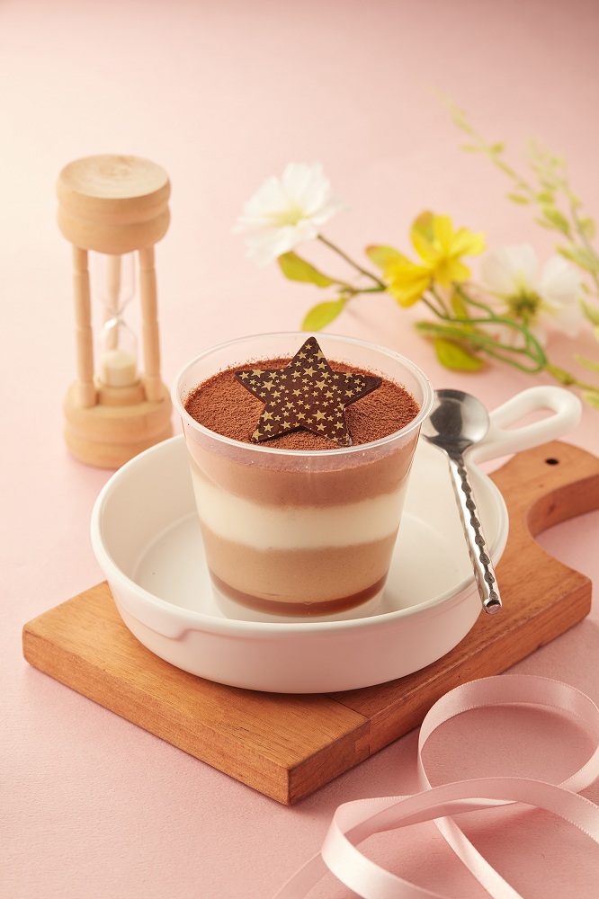 ▼「福灣香頌可可杯」則是選用台灣十號53%深黑牛奶巧克力,此款巧克力獲得2018 ICA 世界巧克力大賽亞太區金牌,以略高的烘焙溫度帶出台灣可可強烈的堅果與甘草味,再加入低比例的奶粉使其圓潤平衡,加上濃郁巧克力慕斯、香草戚風及白巧克力慕斯的兩種奶香融合,獨特的滋味讓人欲罷不能。