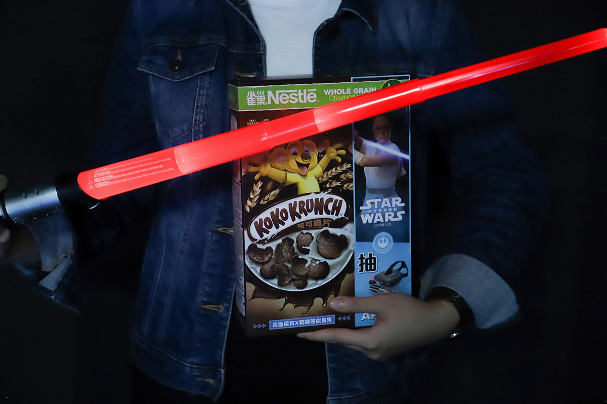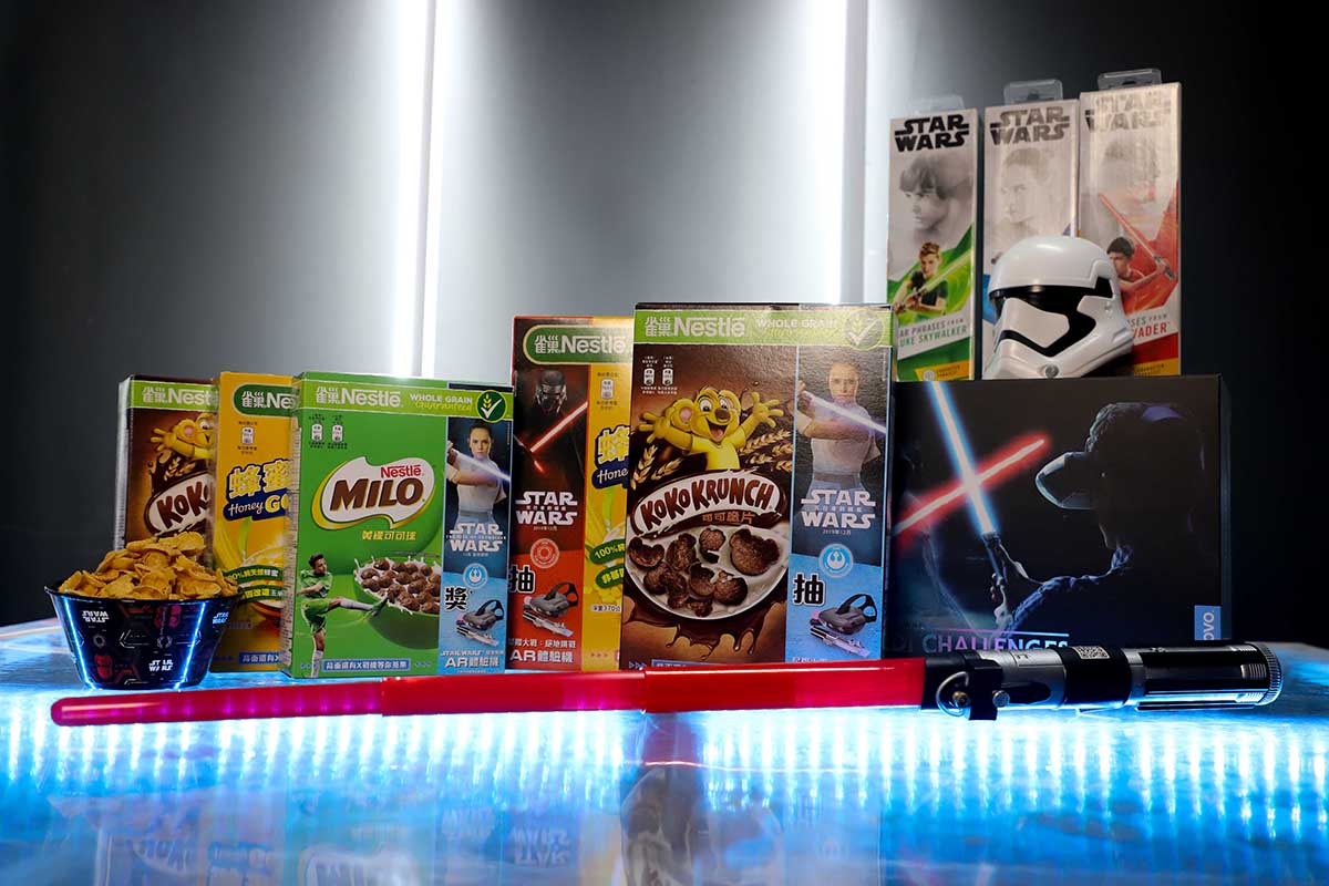 ▼《STAR WARS:天行者的崛起》電影未演先引發話題,雀巢早餐脆片配合電影宣傳推出限定包裝,盒裝背面共有兩款DIY組裝模板,可以讓STAR WARS迷自由組裝。即日起至2020年1月5日只要購買限定包裝並保存發票與明細,輸入包裝上的QR Code還可秒速對獎,有機會獲得市價$6,990的AR體驗機以及STAR WARS的周邊好禮。