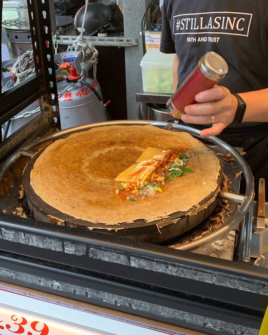 ▼而「煎餅菓子」也有非常多種口味任君挑選,喜歡吃濃郁口味的朋友們可以選擇「起司玉米煎餅」,一口咬下金黃的起司融在口中~實在太療癒啦!愛吃辣的人則可以點「韓式泡菜起司煎餅」,酸酸辣辣的味道再配上煎餅的餅皮真的超刷嘴!