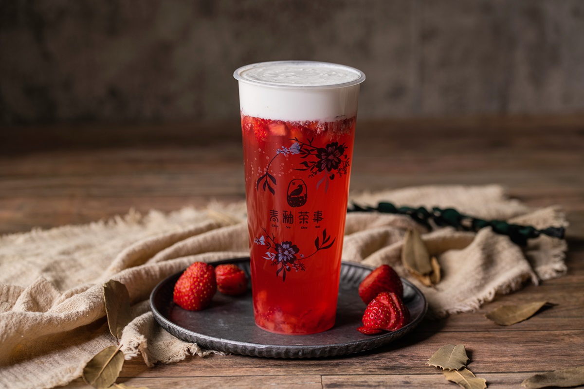 ▼除了「草莓布蕾」之外,青釉茶事的經典奶蓋系列也推出草莓版本,清爽的草莓酸甜味,和奶蓋節和在一起,喝起來甜而不膩,還能吃得到草莓果粒~