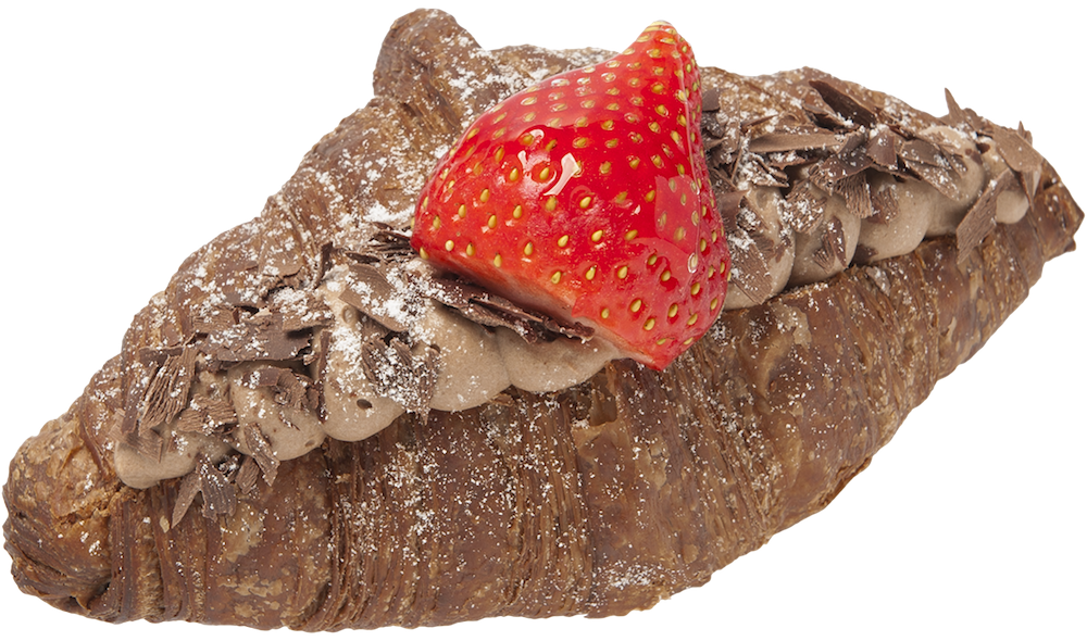 ▼草莓可可森林(69元,即日起在全台正櫃上市):酥脆可頌灌入滑順香濃的可可牛奶餡,嚐起來香醇濃郁不膩,大方撒上黑巧克力碎後,再點綴新鮮草莓在上頭,視覺與味覺的雙重享受~