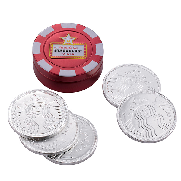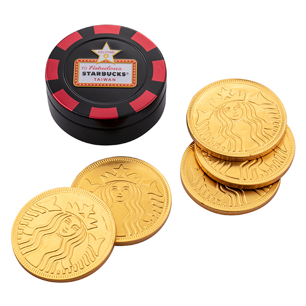 ▼籌碼概念的鐵盒內含五片金幣巧克力,搭配百老匯霓虹與好萊塢星光大道風格,讓您從耶誕到開春好運一整年。鐵盒規格小巧,適合放airpod或飾品小物,外盒印有TAIWAN字樣,也適合拿來送給外國親友或觀光客的伴手禮。
