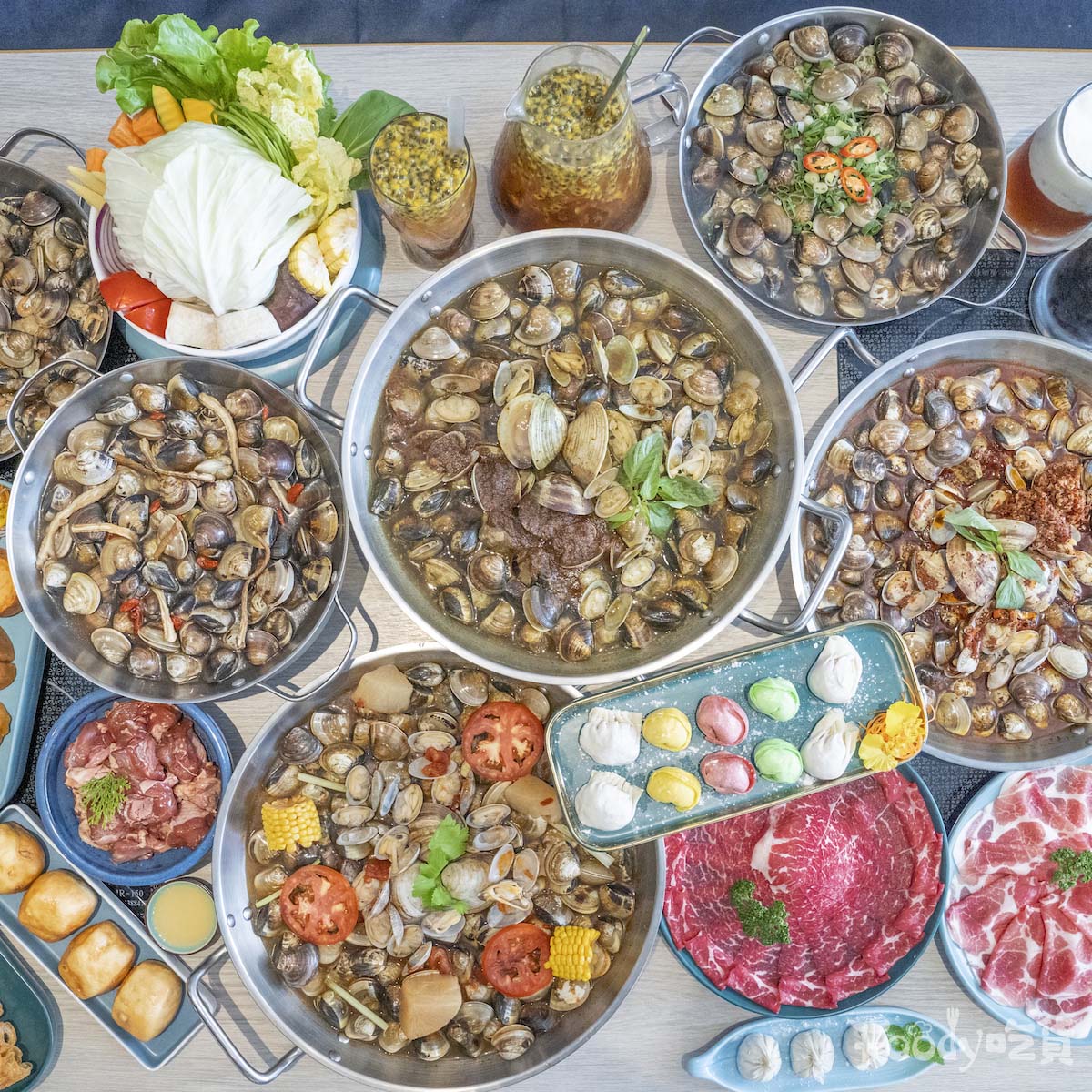 ▼春囍卜卜鍋有6種口味可任選,鍋中塞滿了大大小小的蛤,除了經典的文蛤外,也有大顆的牛奶蛤,要讓你吃好吃滿~