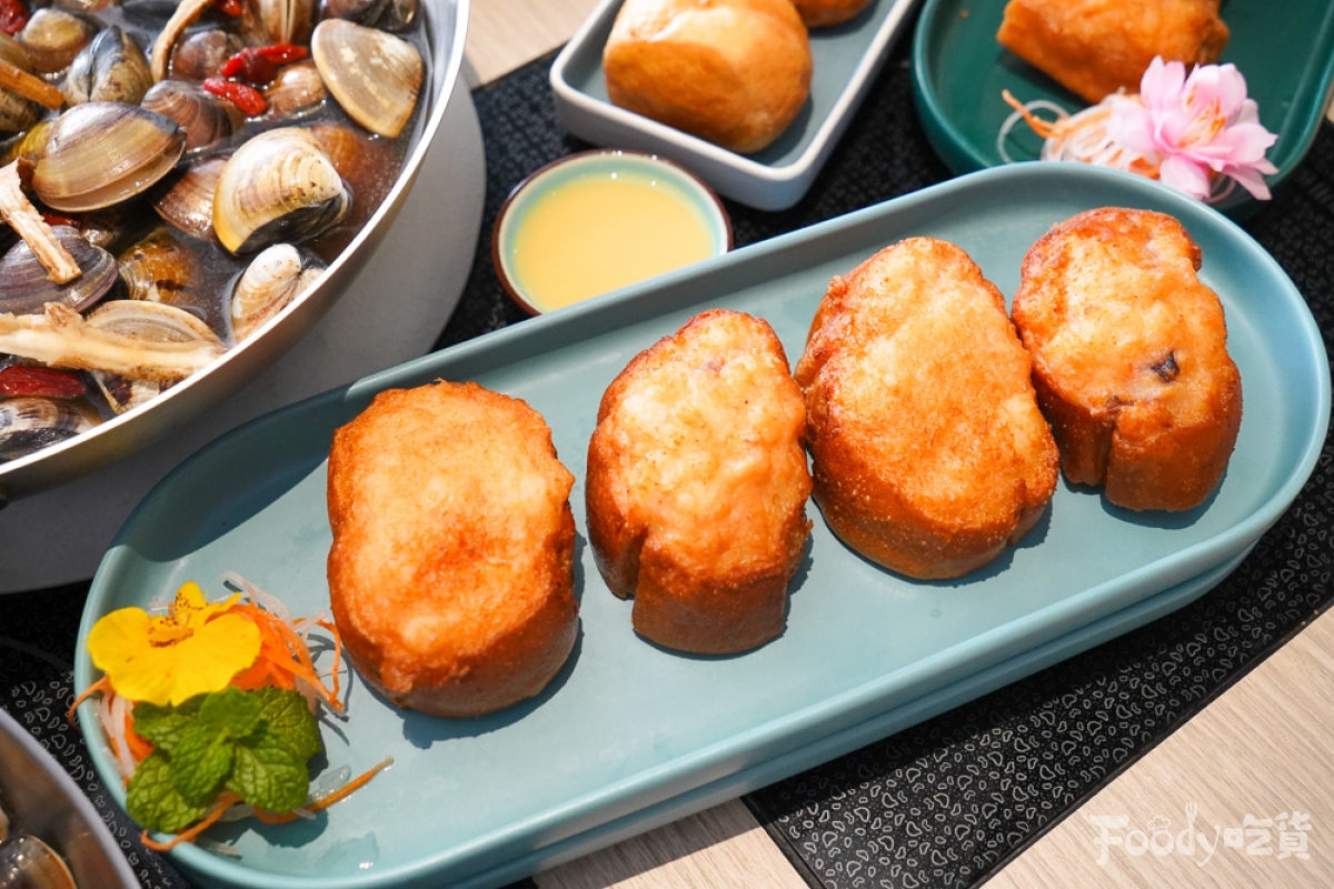 ▼此外,值得介紹的還有春囍這超特別的火鍋料「百花鬼鬼」:在老油條夾著百花餡(蝦漿+花枝),在鍋中稍微煮過就能享用,Q彈百花餡與酥脆的油條口感超搭,若在鍋中放得久一點、讓油條再稍微泡得更軟,又能嚐到完全不同的口感,一道可以有多重享受。