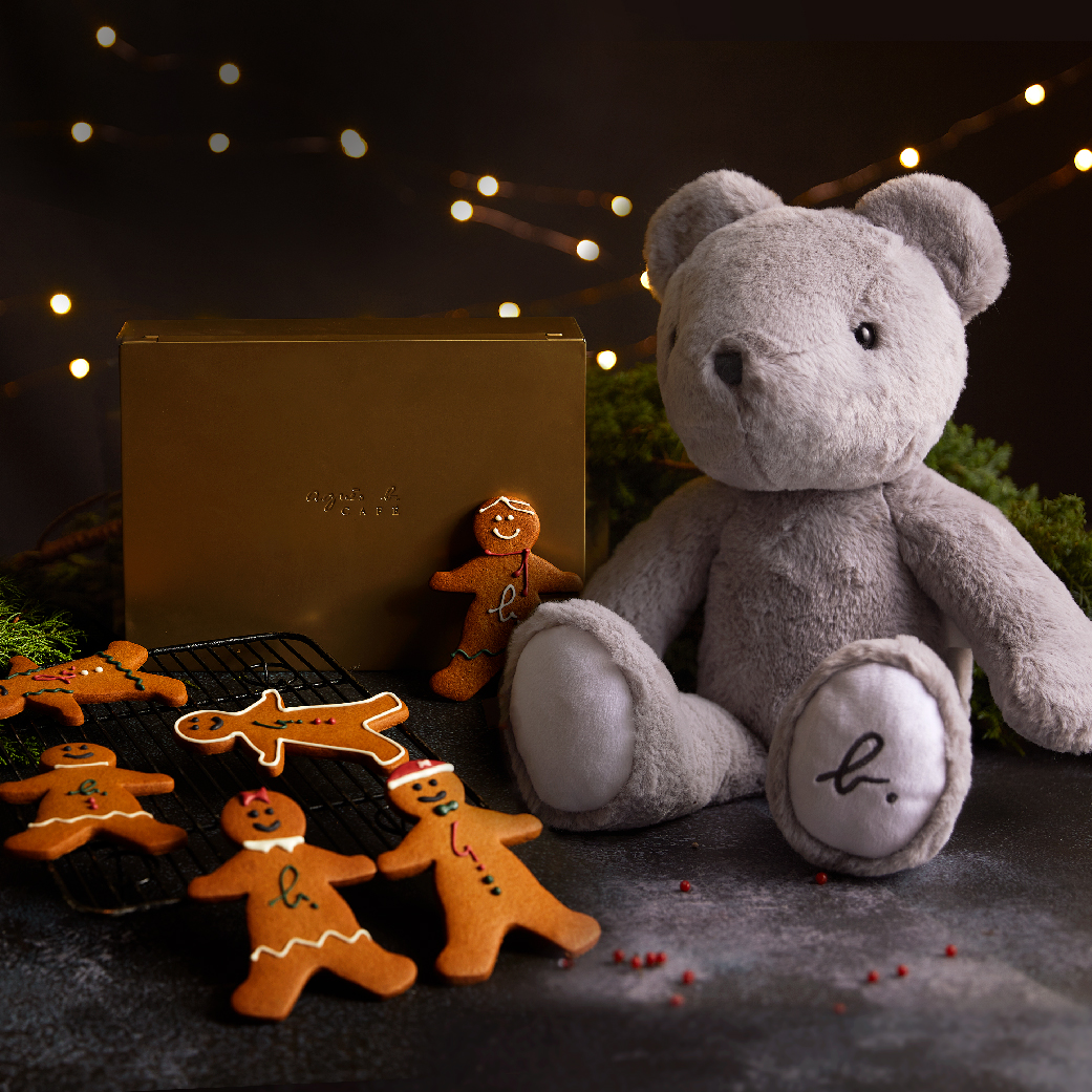 ▼另備有多款聖誕限定禮盒,包含注入全新可愛造型的的薑餅人,金色鐵盒包裝具佳節氛圍。亦推出灰色絨毛小熊與薑餅人搭配而成的限定組合,灰色絨毛小熊模樣純真可愛,觸感柔軟,腳底繡有經典 b. Logo,令人愛不釋手,為年末贈禮、派對交換禮物的品味之選。