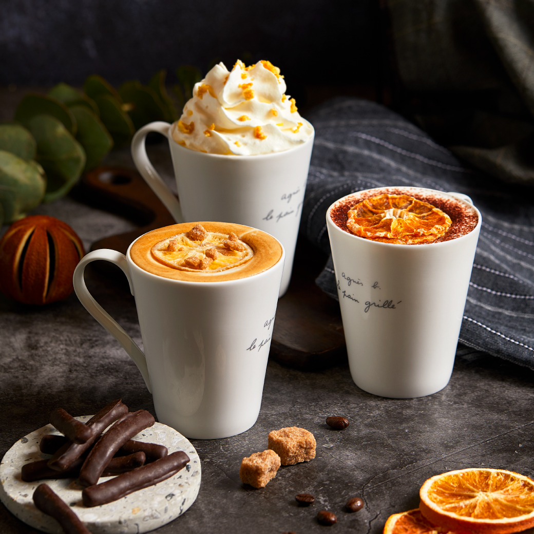 ▼季節限定風味飲品於年末同步上市,優雅橙香風味拿鐵與柑橘風味巧克力,以清新的橙橘搭配厚實的咖啡拿鐵、巧克力飲,最後放上柑橘片與橙片,完美詮釋溫暖洋溢的歲末時刻,烘托濃濃的佳節氣氛。深受女人喜愛的焦糖風味茶拿鐵,融合太妃糖甜香與焦糖的香醇濃郁,上層以鮮奶油與香脆焦糖增添驚喜口感,為冬日帶來溫馨暖意。