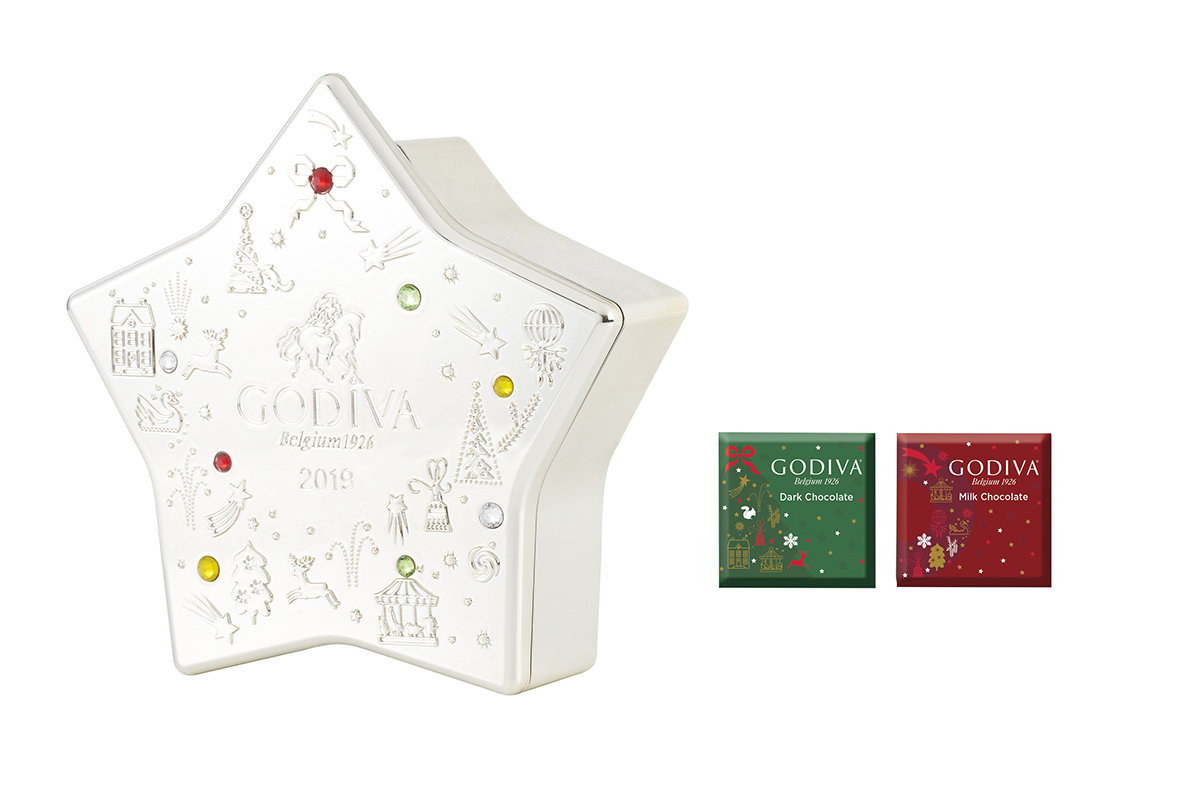 ▼精巧的銀色星星造型裝飾禮盒,內藏8片GODIVA聖誕片裝巧克力。巧克力食用完畢後,精緻的盒子還能用來作為放置女孩們的飾品、或聖誕樹的造型裝飾,隨時感受佳節的歡欣氣氛。