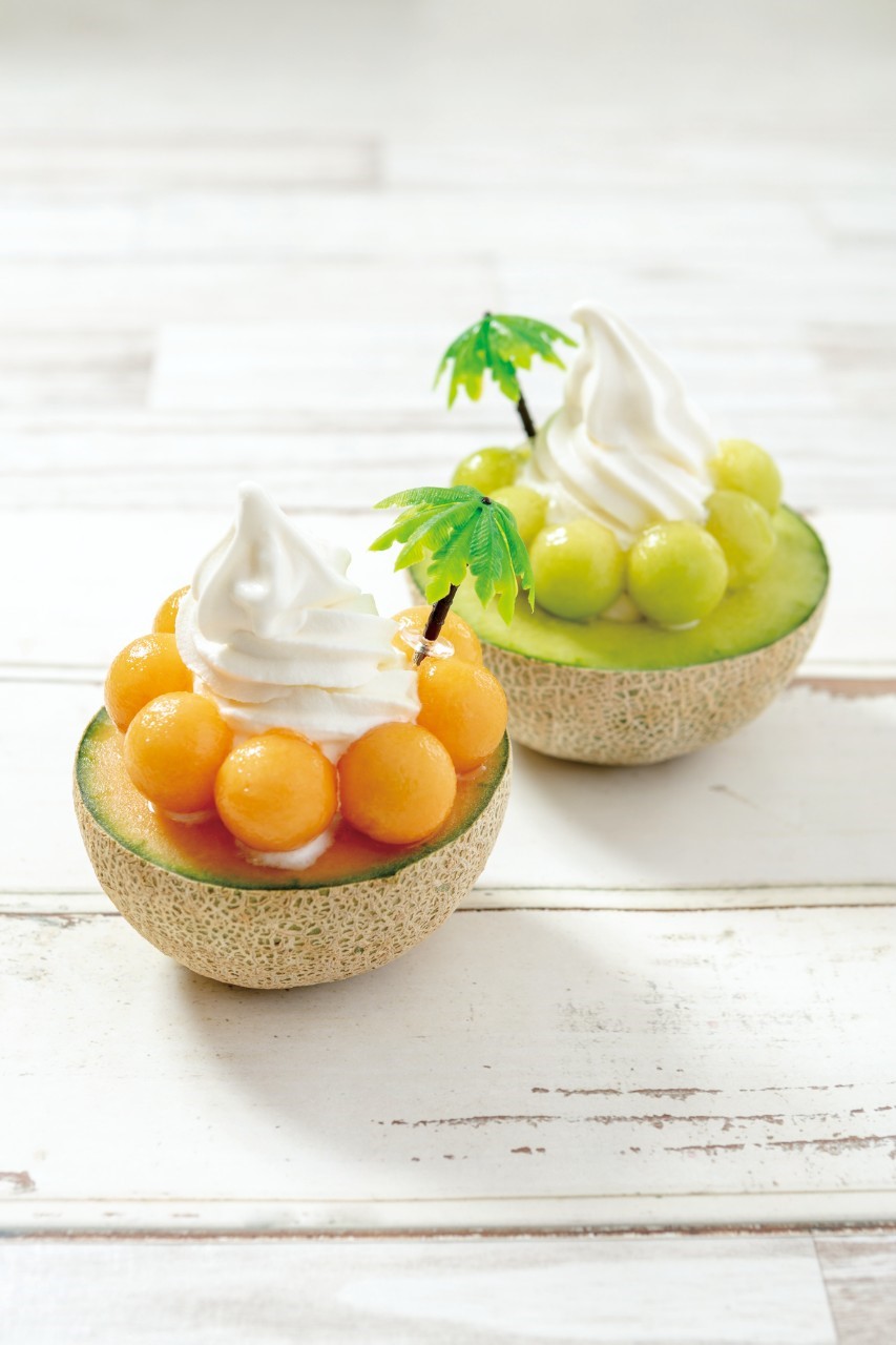 ▼將半顆新鮮哈密瓜果肉挖出球狀,擠上北海道牛乳霜淇淋,再將一球球哈密瓜果肉點綴在霜淇淋四周。不管是綠色果肉或橘色果肉哈密瓜,嚐起來都果香可口,外觀也超級好拍 !