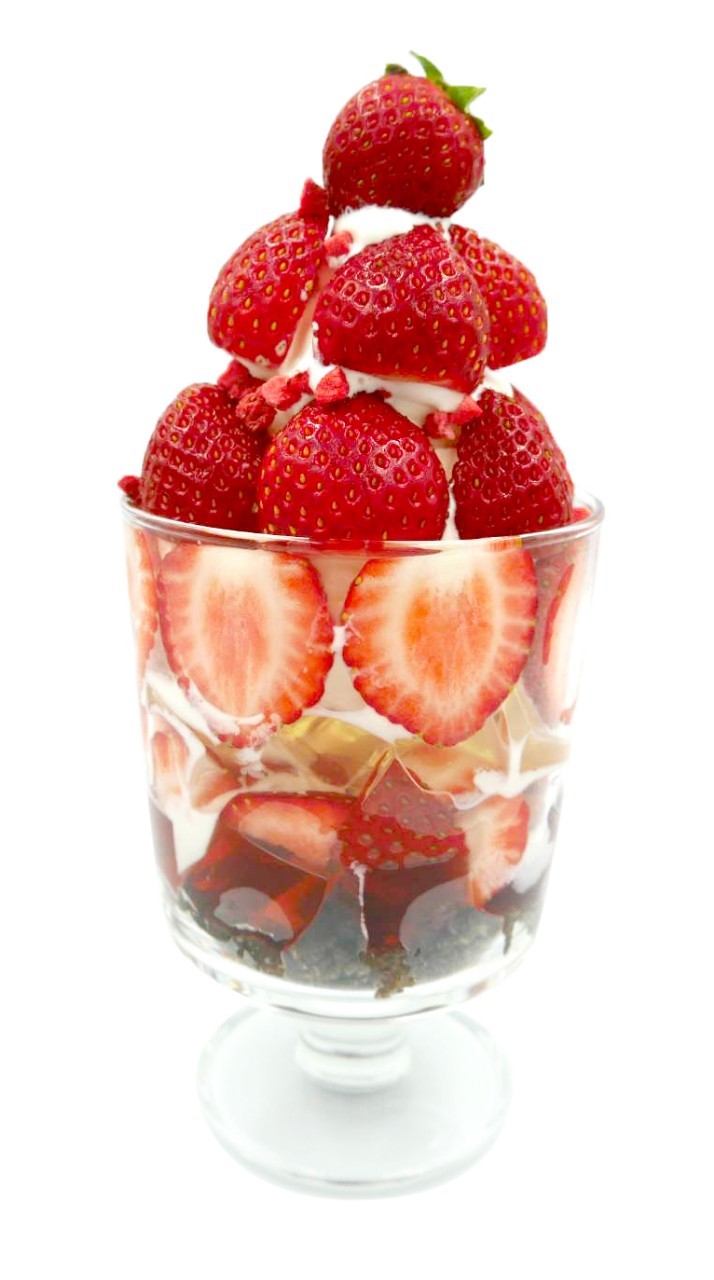 ▼將又紅又大顆的特選新鮮草莓、草莓果凍、蜂蜜果凍、草莓凍乾及北海道牛乳霜淇淋層層疊疊放入杯中,從外觀看起來就讓人垂涎三尺,每杯聖代都奢侈的使用約8~12顆草莓(視草莓大小不同)季節限定的美味,不用特地飛到日本就可以大快朵頤。