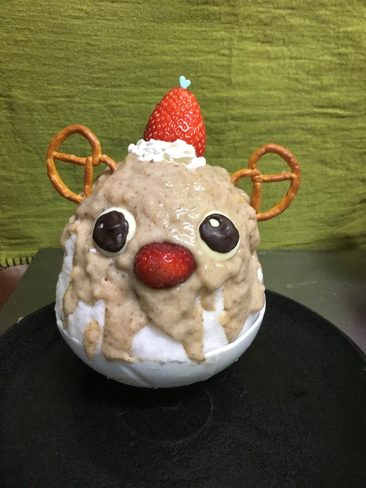 ▼…這到底是什麼啦XD?!這家的「走鐘系」造型刨冰,根本和整間店產生極大的反差萌(?)啊!看看這幾頭一臉生無可戀的熊,而且因為開店三週年所以額頭上就寫一個「3」、四週年就寫一個「4」、到了五週年突然就變成「5th」,倒是統一一下啊喂!