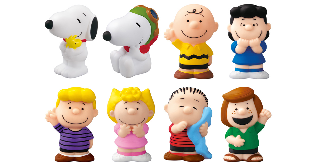 ▼「史努比好朋友們」8款軟膠人偶:「王牌飛行員」史努比、被史努比抱著的糊塗塌客、查理布朗、露西等漫畫中的8位人氣角色齊聚,Q萌外型完全展現各角色魅力!