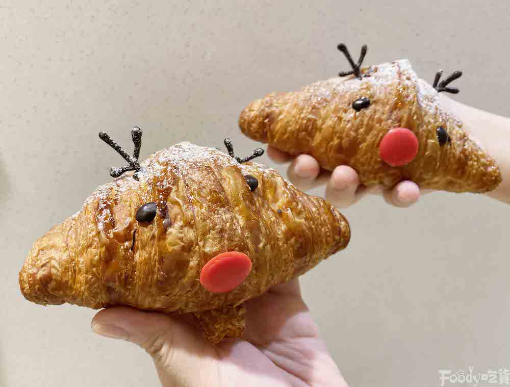 ▼「巧克力麋鹿」麋鹿造型可頌灌入滑順香濃的可可牛奶餡,經由裝飾化身可愛的麋鹿,一口咬