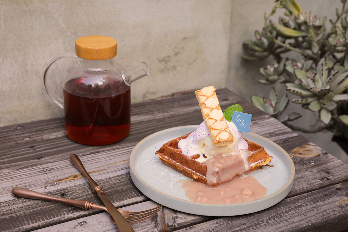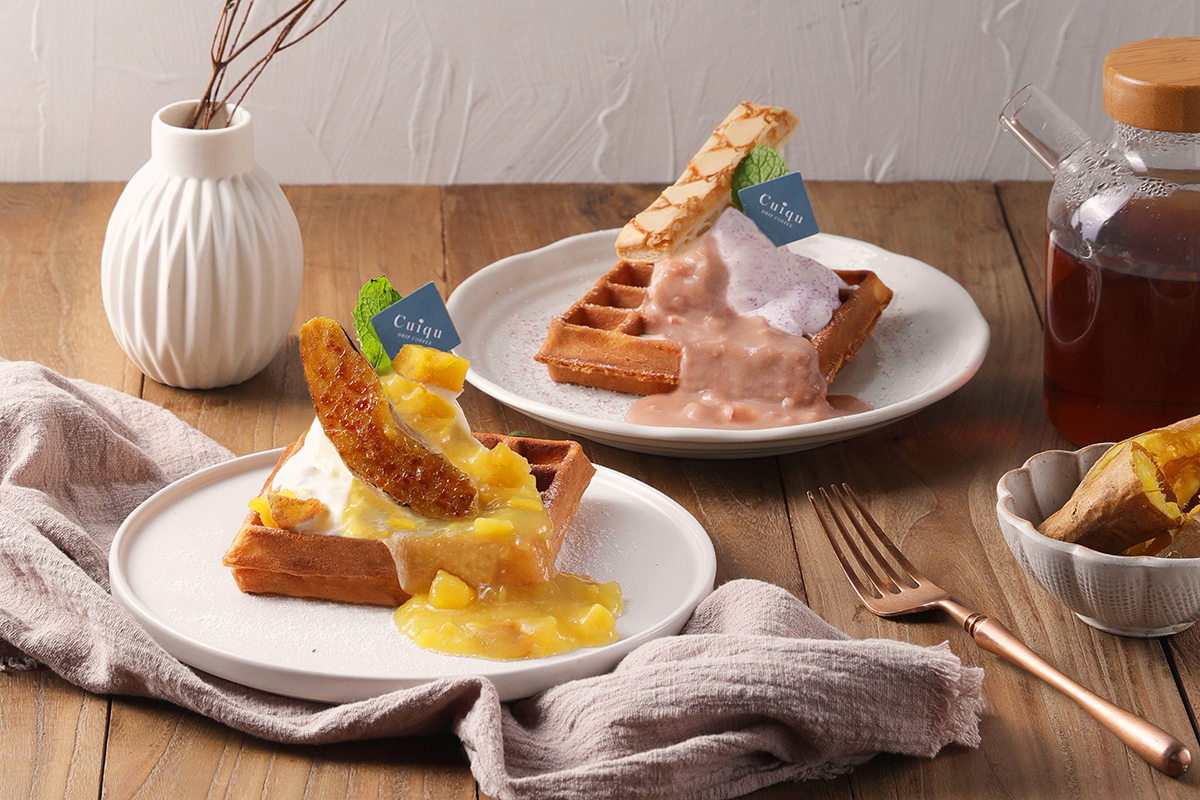 ▼奎克咖啡於耶誕節推出冬季限定「黃金地瓜熱醬鬆餅 $180」,嚴選瓜瓜園職人栽種的57號黃金地瓜製成香甜熱醬,飽滿璀璨金黃色澤蕃薯塊以及整條切片的冰心地瓜,外酥內軟的格子鬆餅冒著溫暖白煙,保證大大滿足地瓜控的脾胃。