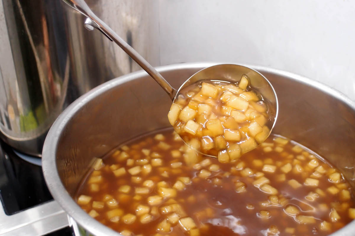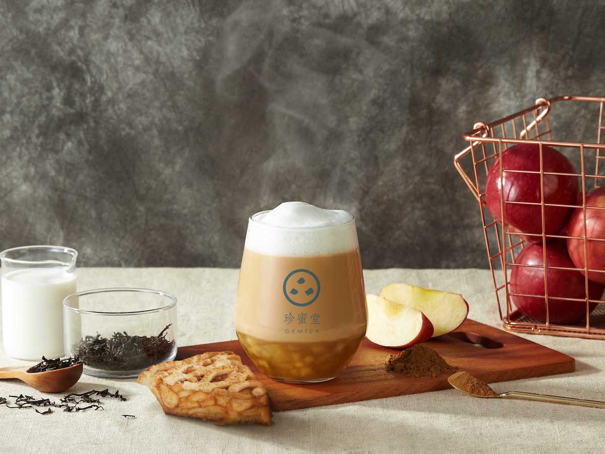 ▼另一項冬季主推商品「蘋果派對鮮奶茶」:把新鮮蘋果切丁後,加入冰糖、肉桂粉慢火蜜漬熬煮成蘋果醬,再搭配濃厚鮮奶茶的奶香與茶韻,以經典甜點「蘋果派」為發想,開發出「甜點系飲品」,每一口的滋味都像真的在吃蘋果派,冷熱都好喝。