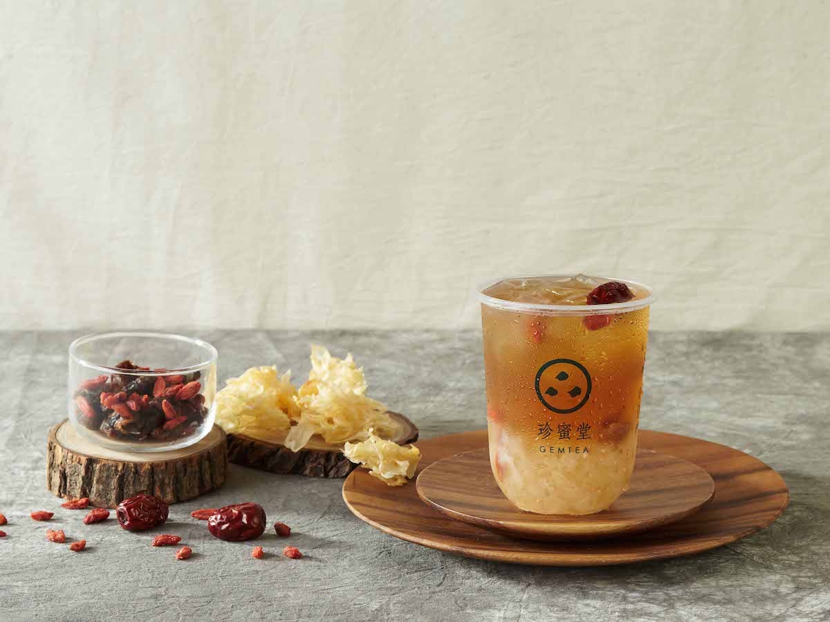 ▼此外,珍蜜堂還推出養生系飲品「冰糖銀耳桂圓茶」,以自製冰糖燉煮銀耳,加上桂圓、紅棗等溫補食材,在香氣濃郁的茶飲裡能嚐到桂圓與紅棗果肉,冷熱皆宜的溫補效果,最適合在冬季來上一杯~
