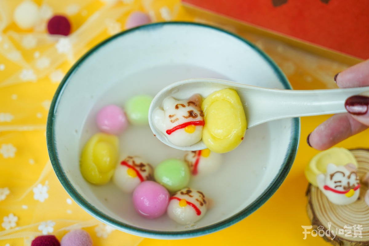 ▼「招財貓造型湯圓」介紹完麻將湯圓,就要來一些更應景的新年湯圓啦,這個可愛招財貓湯圓和金元寶湯圓,相信不管是大人還是小孩,都能感受到招財貓帶來的喜氣感!
