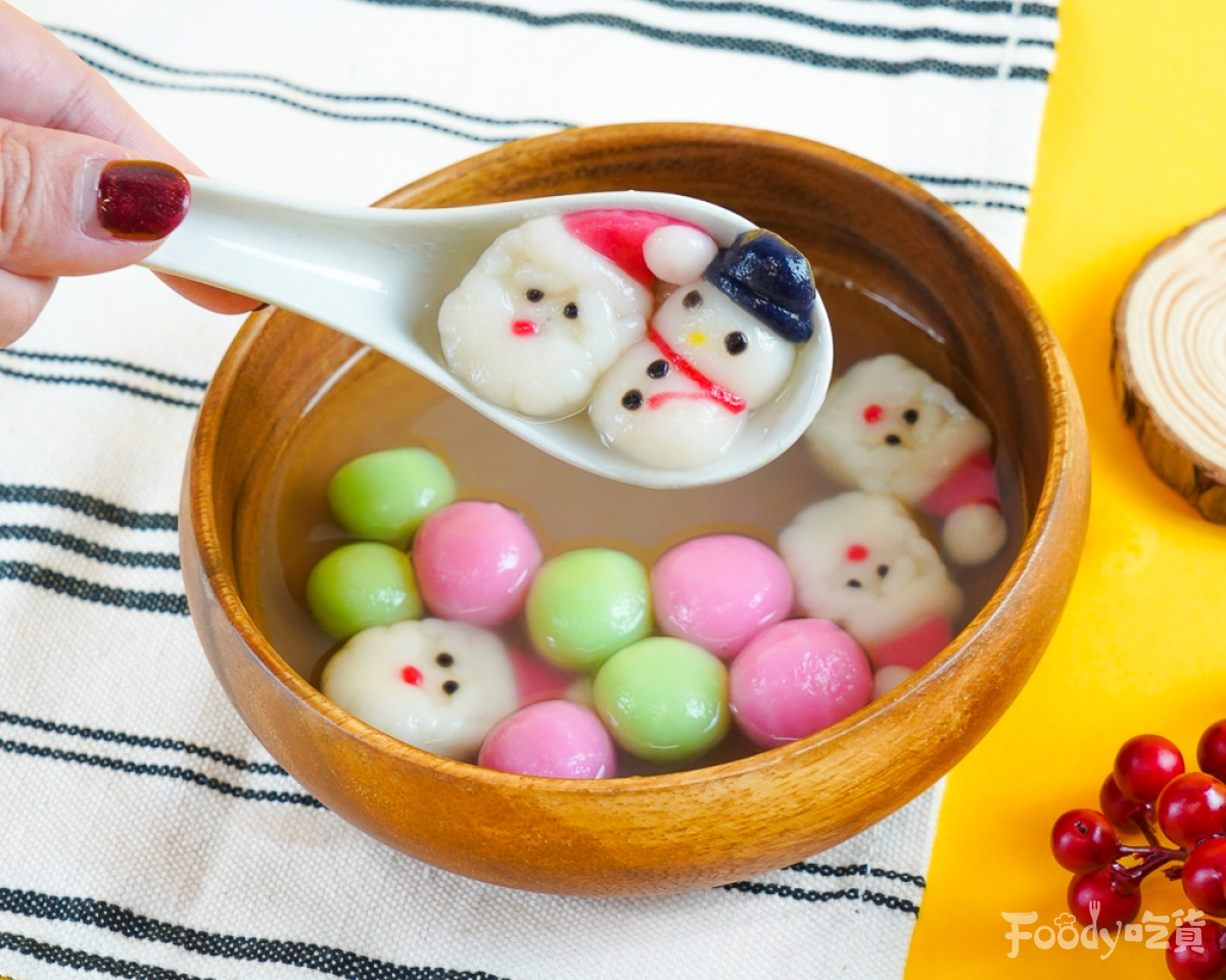 ▼「聖誕雪人造型湯圓」除了有可愛的聖誕老公公之外,還有的帶著黑色帽子的雪人湯圓,配上薑湯或是紅豆湯,在聖誕節來一碗很可以!