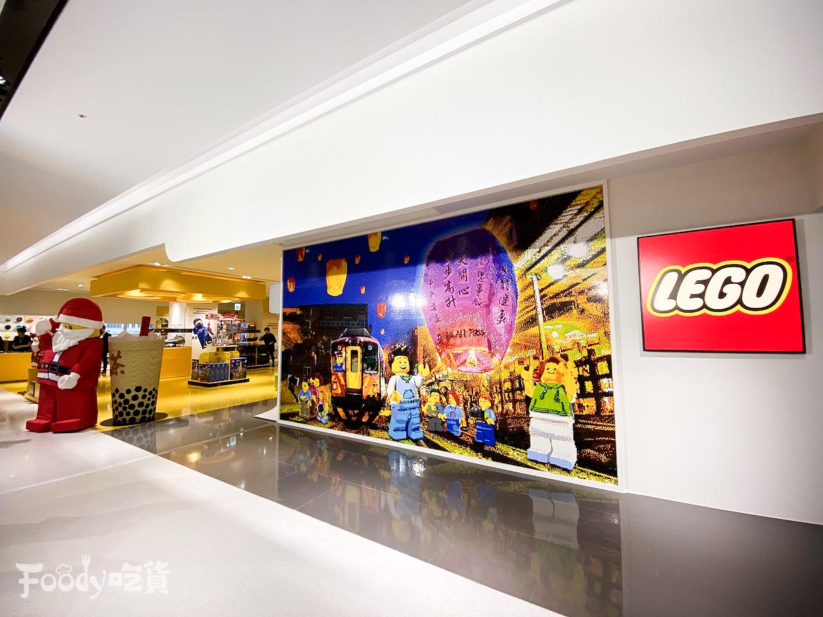 ▼這次樂高授權專賣店比照國際規格,特別設置依照兒童視角商品展示視窗,更特別邀請全台唯一樂高認證大師黃彥智,運用超過20萬顆積木,耗時2個月建造台灣本地的傳統景觀一平溪天燈馬賽克牆。