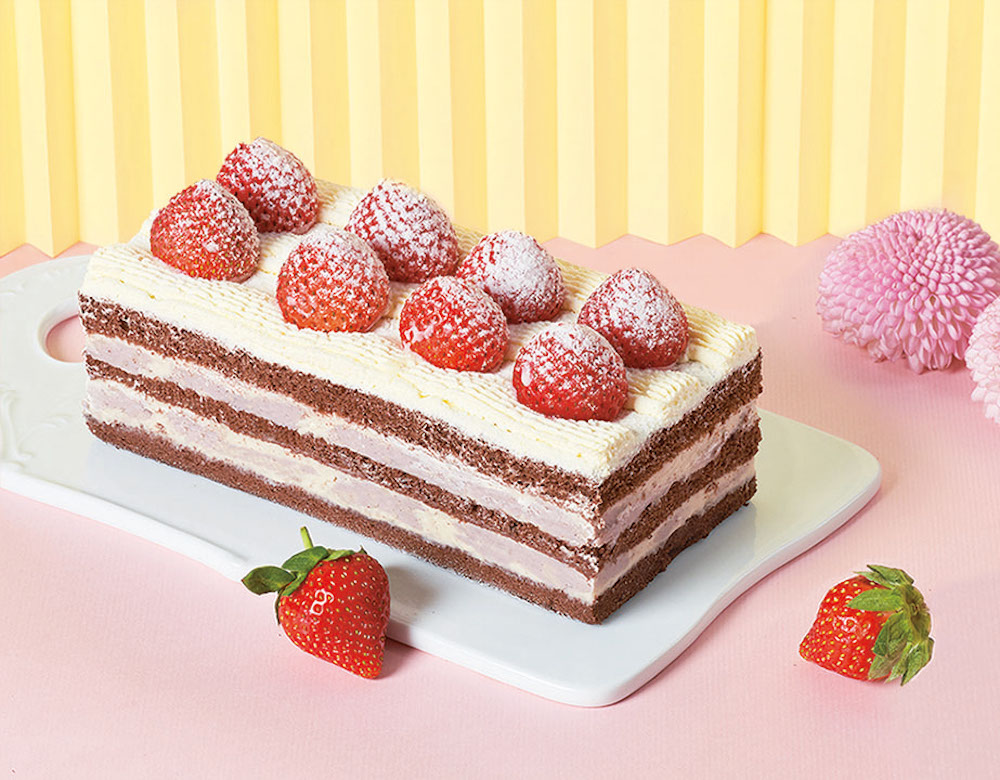 ▼「連珍草莓芋泥夾餡蛋糕」售價 1入/650元;8入/3,592元,巧克力戚風蛋糕與芋泥餡完美融合,採用新鮮草莓,農場直送。