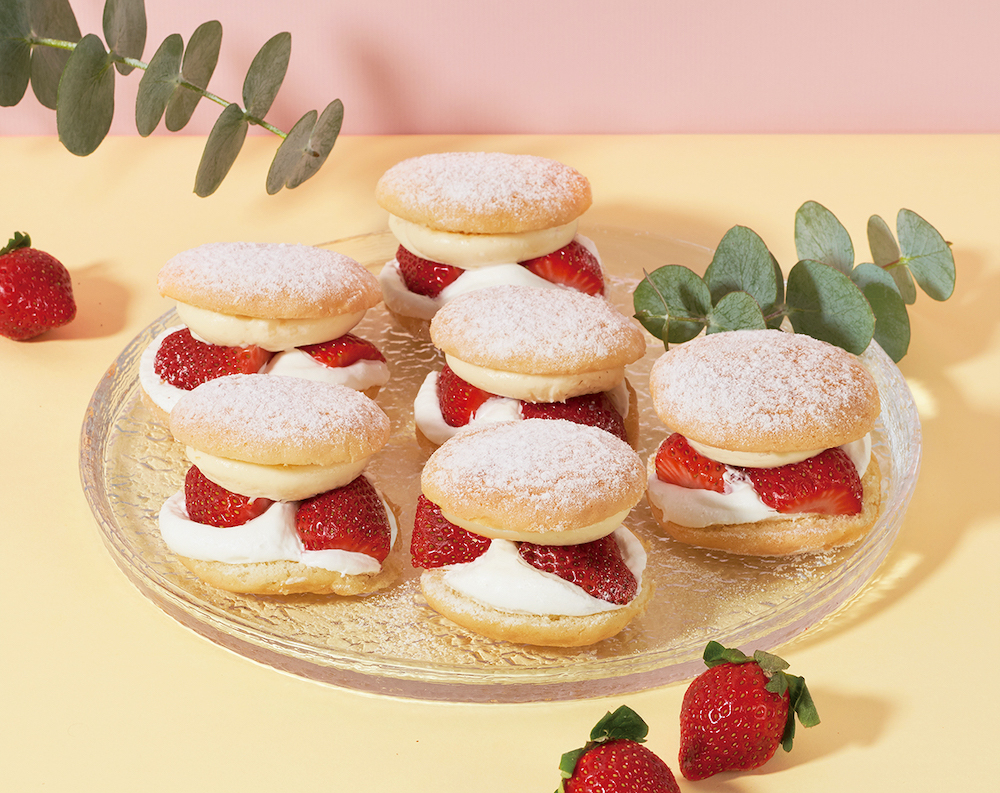 ▼「拿破崙先生鮮草莓布雪」售價6入/盒;2盒/850元 8盒/2,720元,採用現採草莓,結合卡士達醬與北海道生乳鮮奶油。雙餡料、草莓與蛋香十足的布雪蛋糕完美結合。