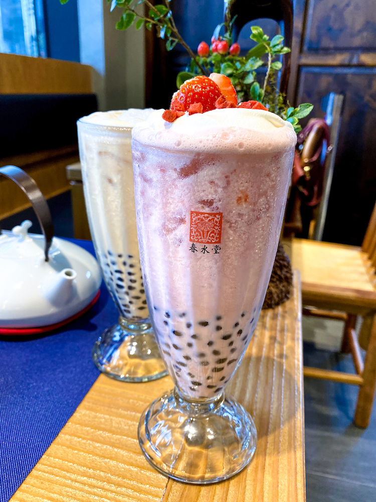 ▼春水堂全新門市也在遠百信義A13開幕啦,逛街逛累了還能到春水堂喝一杯好茶,實在太幸福啦!另外春水堂冬季限定商品「草莓奶霜珍珠茉奶」以翡翠綠茶為基底,再加入新鮮草莓、草莓果泥及草莓果露製作,自然鮮甜的口感環繞在口中實在太療癒啦~