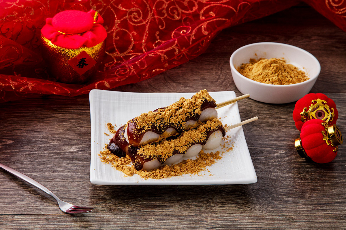 ▼此外,還有兩款全新口味的日本直輸糰子。「黃金薯糰子50元」佐以濃郁黑糖番薯餡的台、日結合的美味,呈現絕妙搭配;「黑糖豆香糰子50元」則淋上黑糖蜜與黃豆粉,有嚼勁又美味。