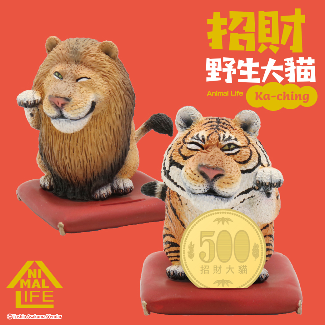 ▼看看這兩隻二頭身的獅子&老虎化身為招財貓,眨著眼睛招人招財招客招福氣實在太療癒啦,底下附有座墊並有卡槽,可以卡上閃亮的錢幣為你帶來幸運喔!