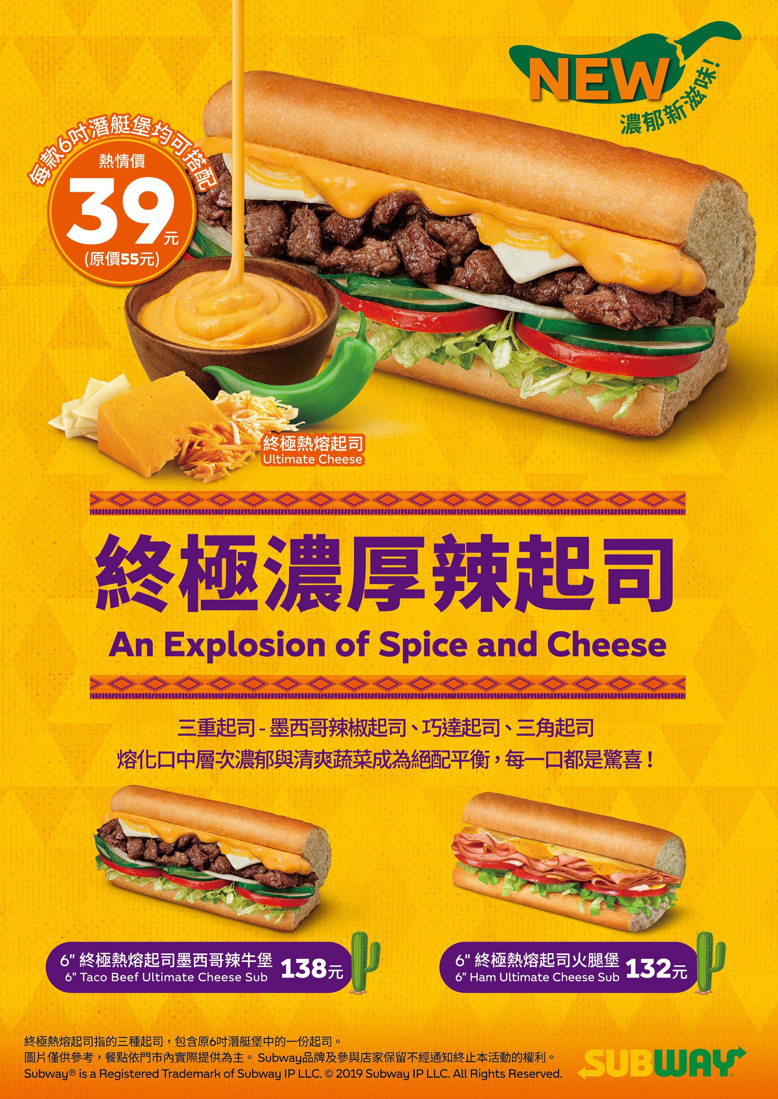 【全台】起司控出發!SUBWAY 2020推「三倍濃終極辣起司」 只要39元熔岩起司get!