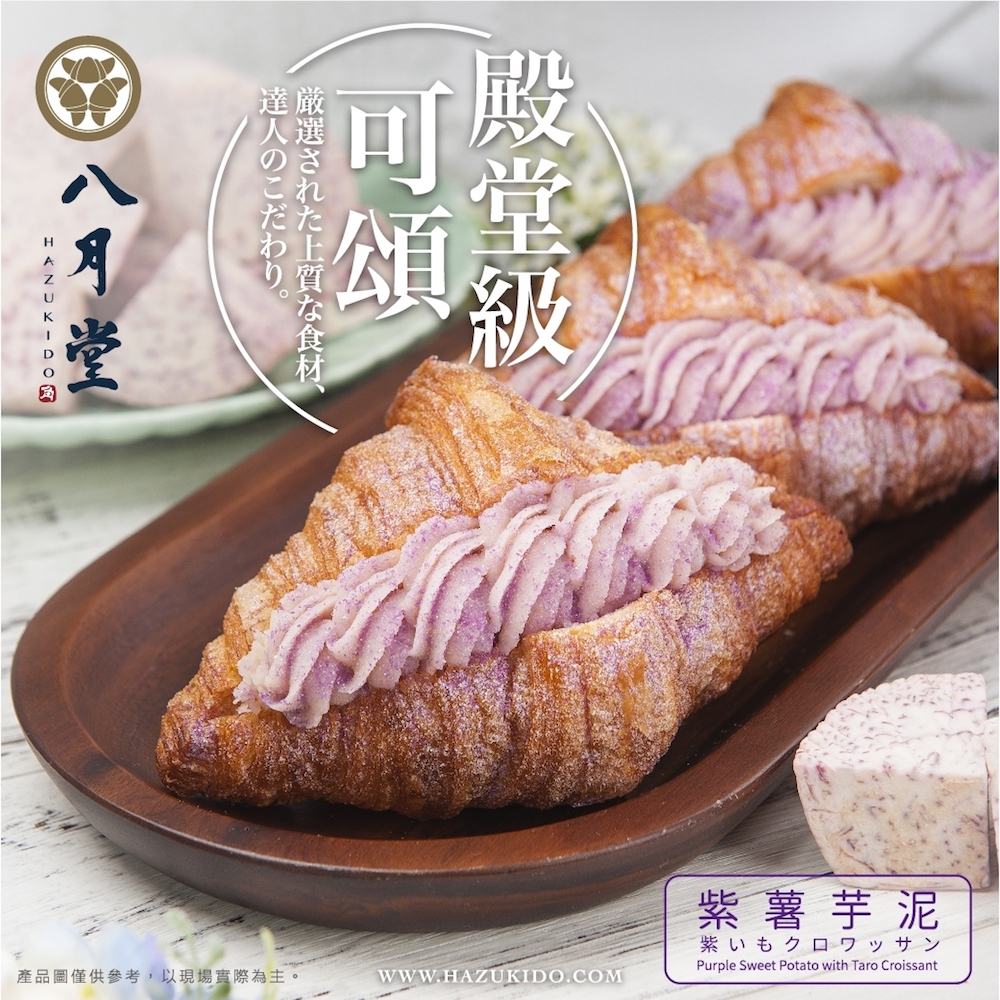 2020年01月03日八月堂新品來啦!自先前推出「草莓維也納」後,這次又推出濃濃節日氣氛的鼠年「黃金薯可頌」,以及芋泥控必吃的「紫薯芋泥」等多款口味來慶新年,將在1/10起於全台正櫃店上市!