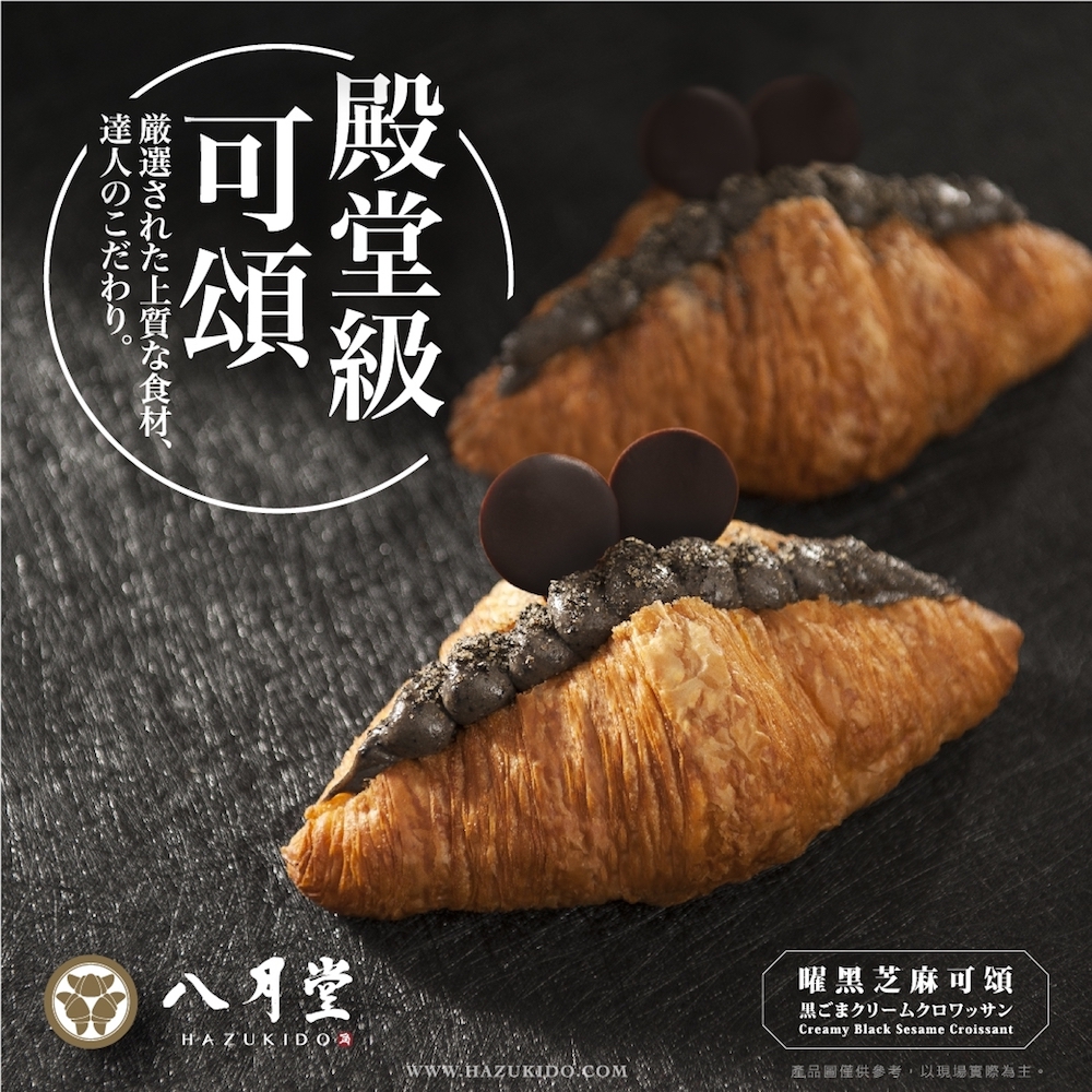 ▼「曜黑芝麻可頌」:嚴選道地黑芝麻醬擠在酥脆可頌上,一口咬下散發出自然濃郁芝麻香氣,甜而不膩,擺上巧克力做裝飾、猶如老鼠的小耳朵,搖身一變為現代感十足可頌。