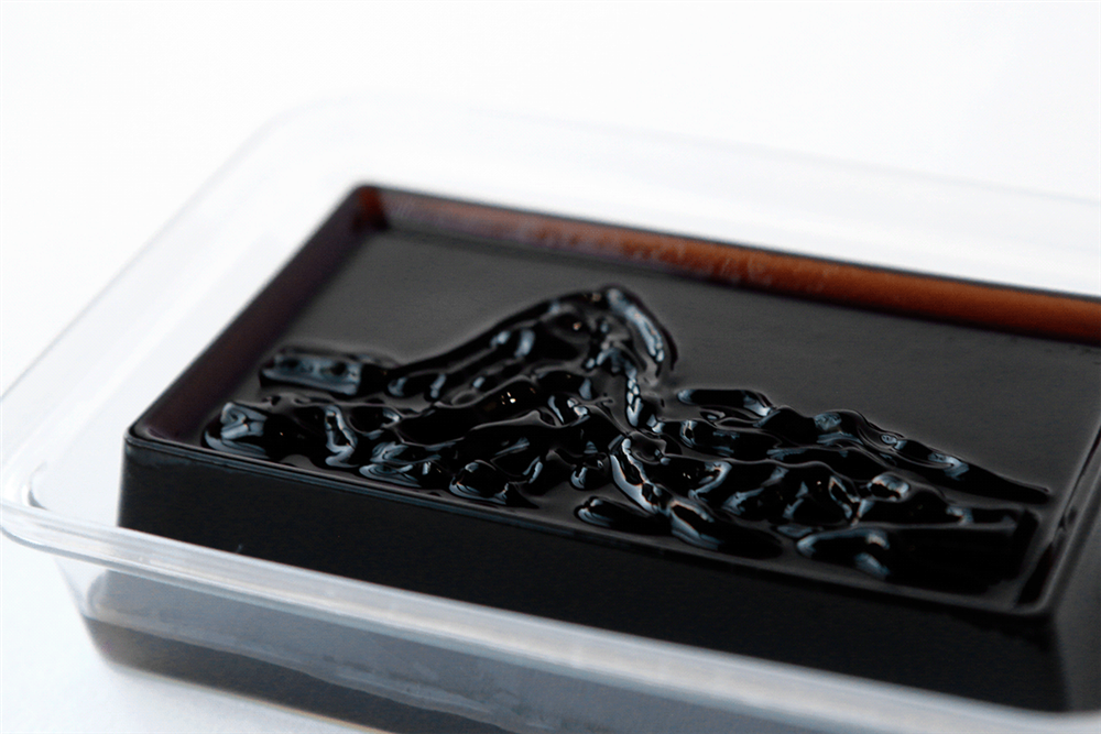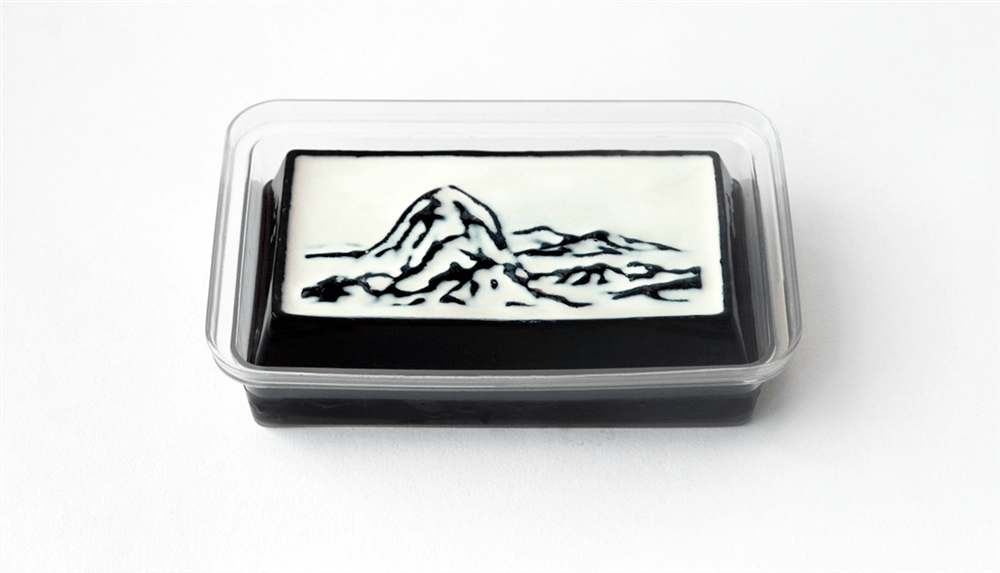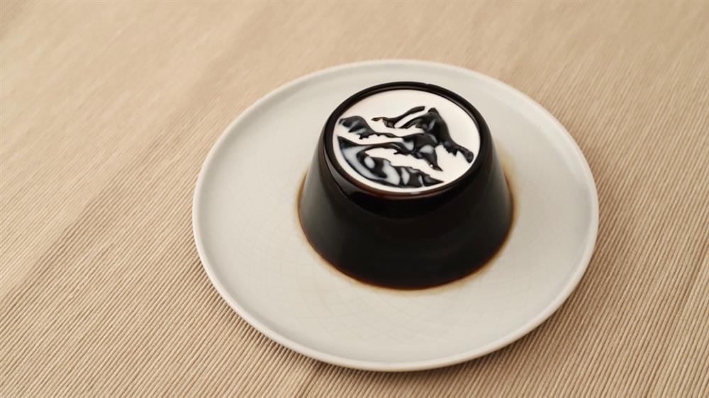 ▼墨戲仙草以清周亮工集名家山水冊的《清石谿雲山煙雨》為靈感,將奶球化身為作畫道具,倒入凹凸有致的仙草表面後,就能浮現靈動的山水畫。婉轉流動之間,又呈現出國畫的留白技法,讓人眼睛一亮。