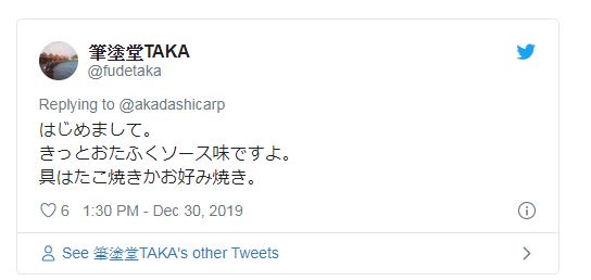 ▼「一定是otafuku醬汁口味。內餡不是章魚燒就御好燒吧。」