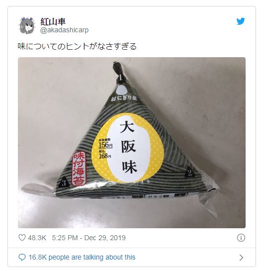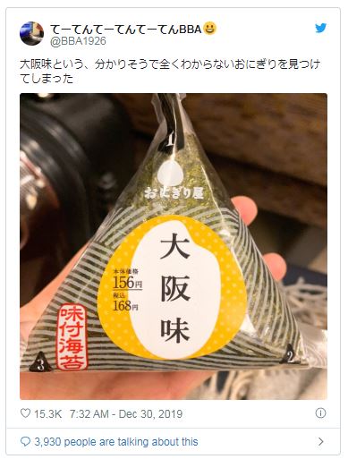 ▼網友們無奈說:「我發現了這樣的飯糰,說是大阪味,好像懂又完全無法理解。」