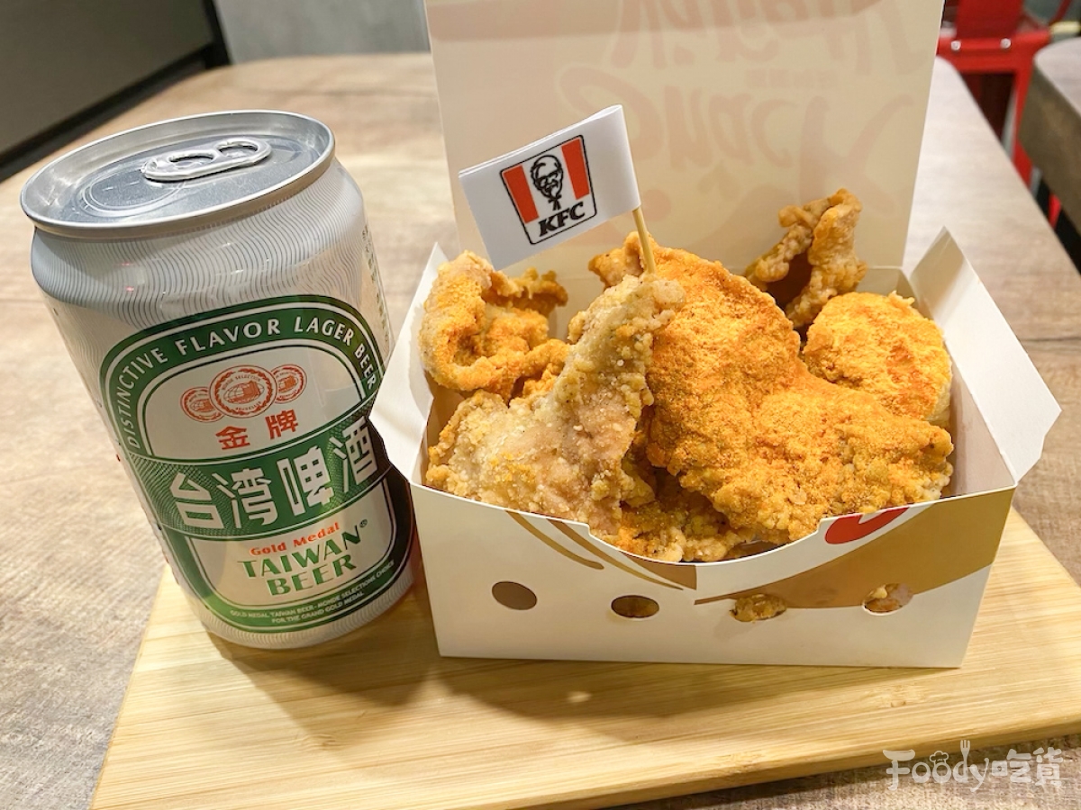 ▼肯德基還同時推出「涮嘴餐」,包含一份紐奧良咔滋雞皮跟一瓶台灣金牌啤酒,堪稱神級下酒菜的雞皮配上「必魯」最對味!