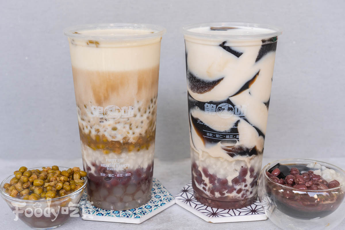 ▼第一站的飲料就是單純只有品名不夠,後面一定要再「+」個兩三樣配料才是正常:看看這杯「仙草凍鮮奶+紅豆+薏仁」,從頭到尾都是料,滑嫩仙草凍跟鮮奶超對味,搭配薏仁香、紅豆甜,整杯滿滿配料喝完根本可以直接抵一頓飯了!