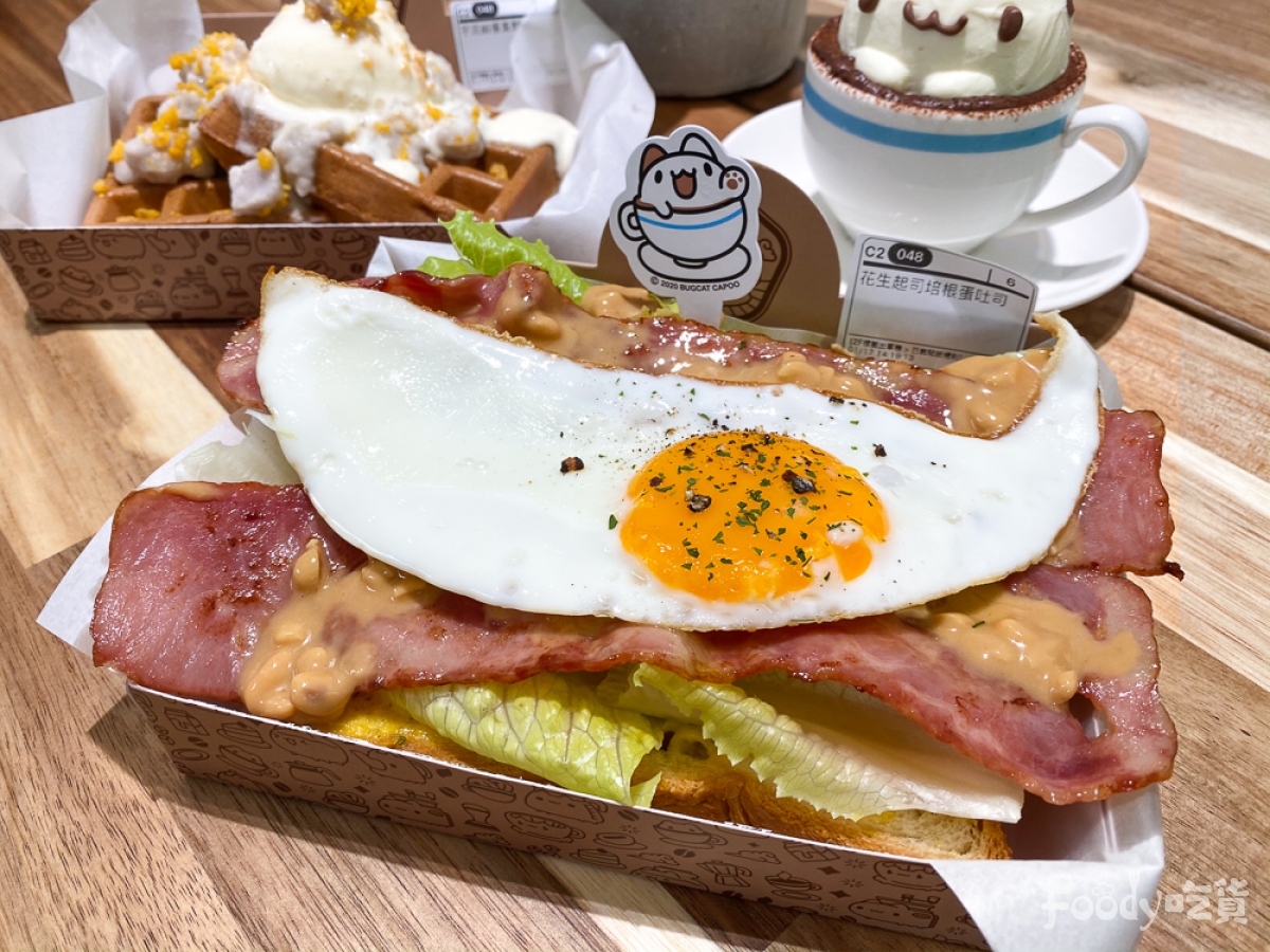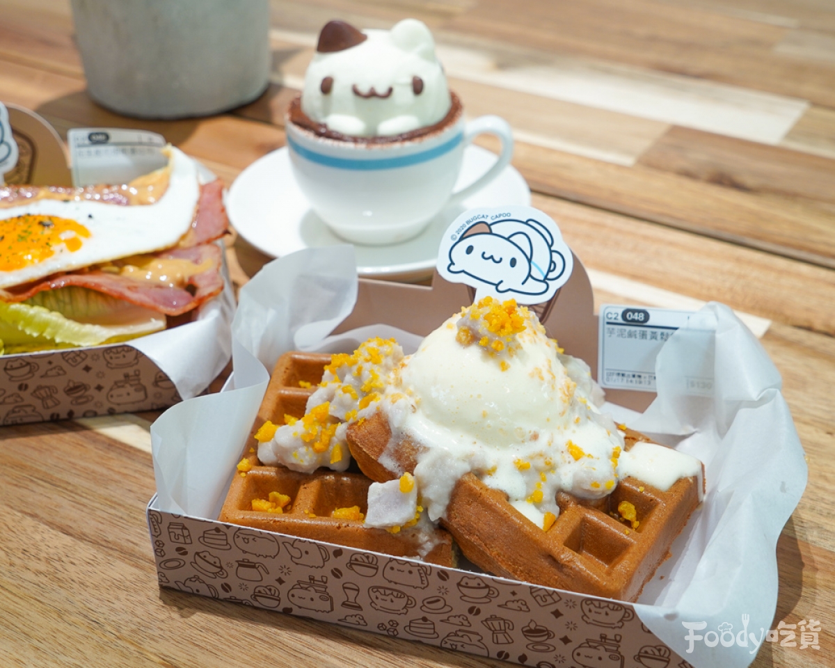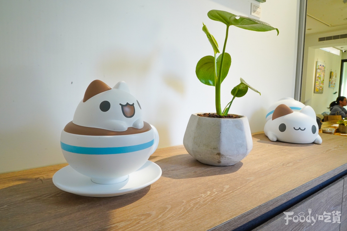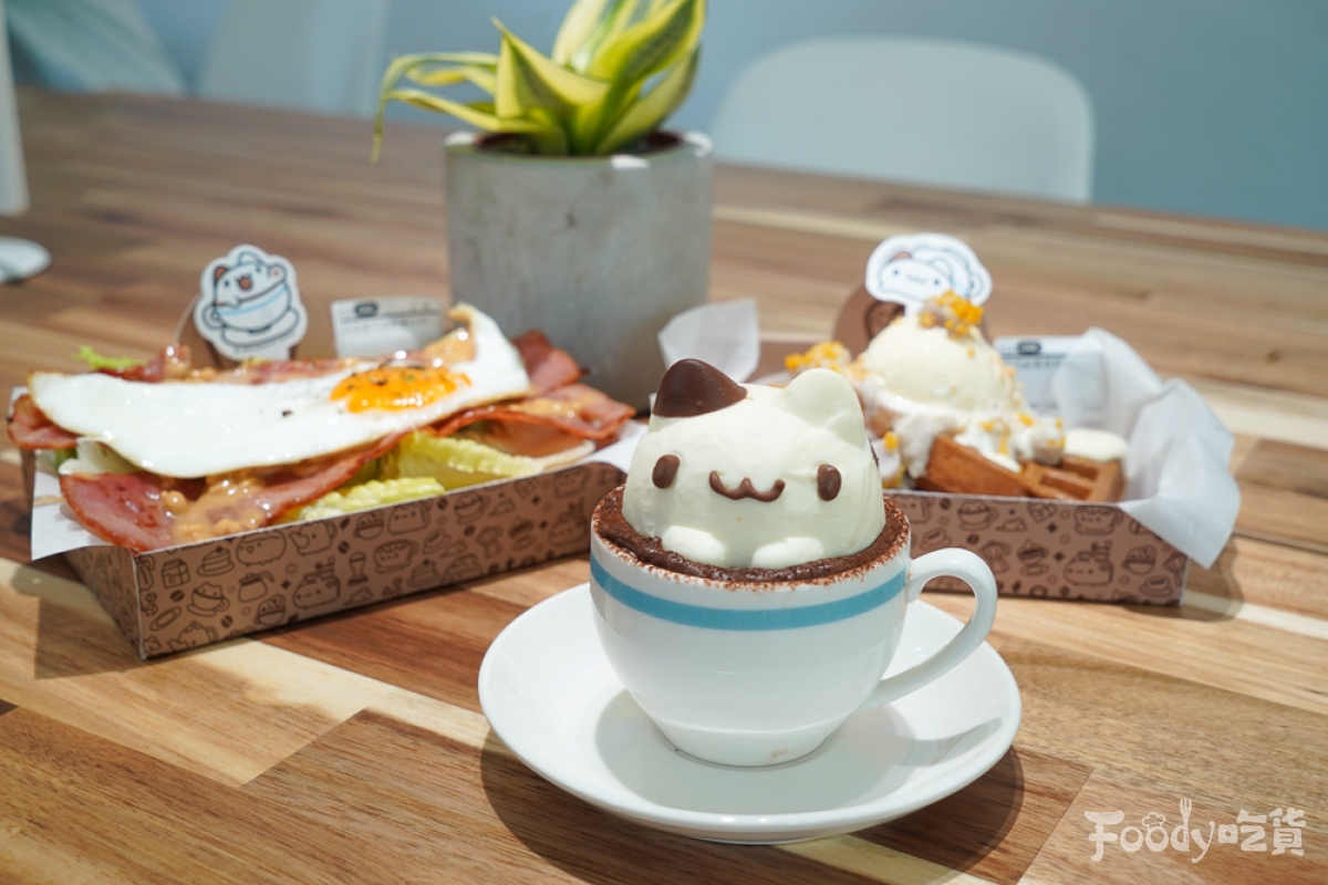 ▼餐點的部份也有提供各式輕食,像是格子鬆餅、開放吐司、甜點等。店內招牌甜點「奶泡貓提拉米蘇」,絕對是粉絲來到這裡必點甜點,超可愛的奶泡貓造型提拉米蘇,不說還以為是甜點櫃裡的裝飾品呢!