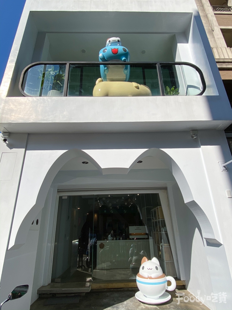 ▼這間位在台中西區的「奶泡貓咖啡」,座落咖波屋附近,遠遠的就可以看到可愛的咖波,正趴在陽台上歡迎你!