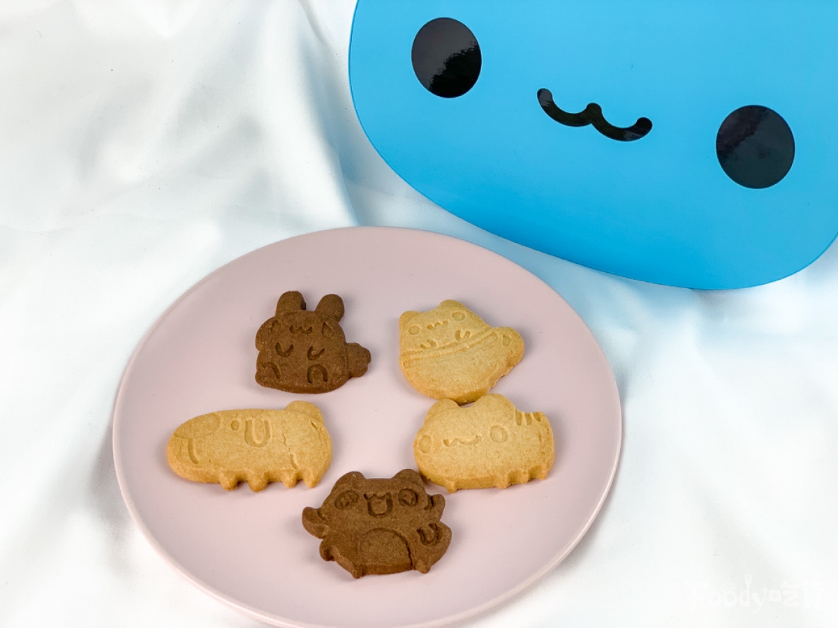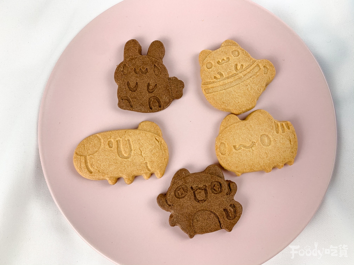 ▼餅乾有兩種口味,分別是奶香餅乾盒巧克力餅乾,而餅乾有五款超可愛的造型,像是咖波、兔兔、狗狗、奶泡貓等五種不同圖案,每拆開一個餅乾就有一種驚喜的感覺!