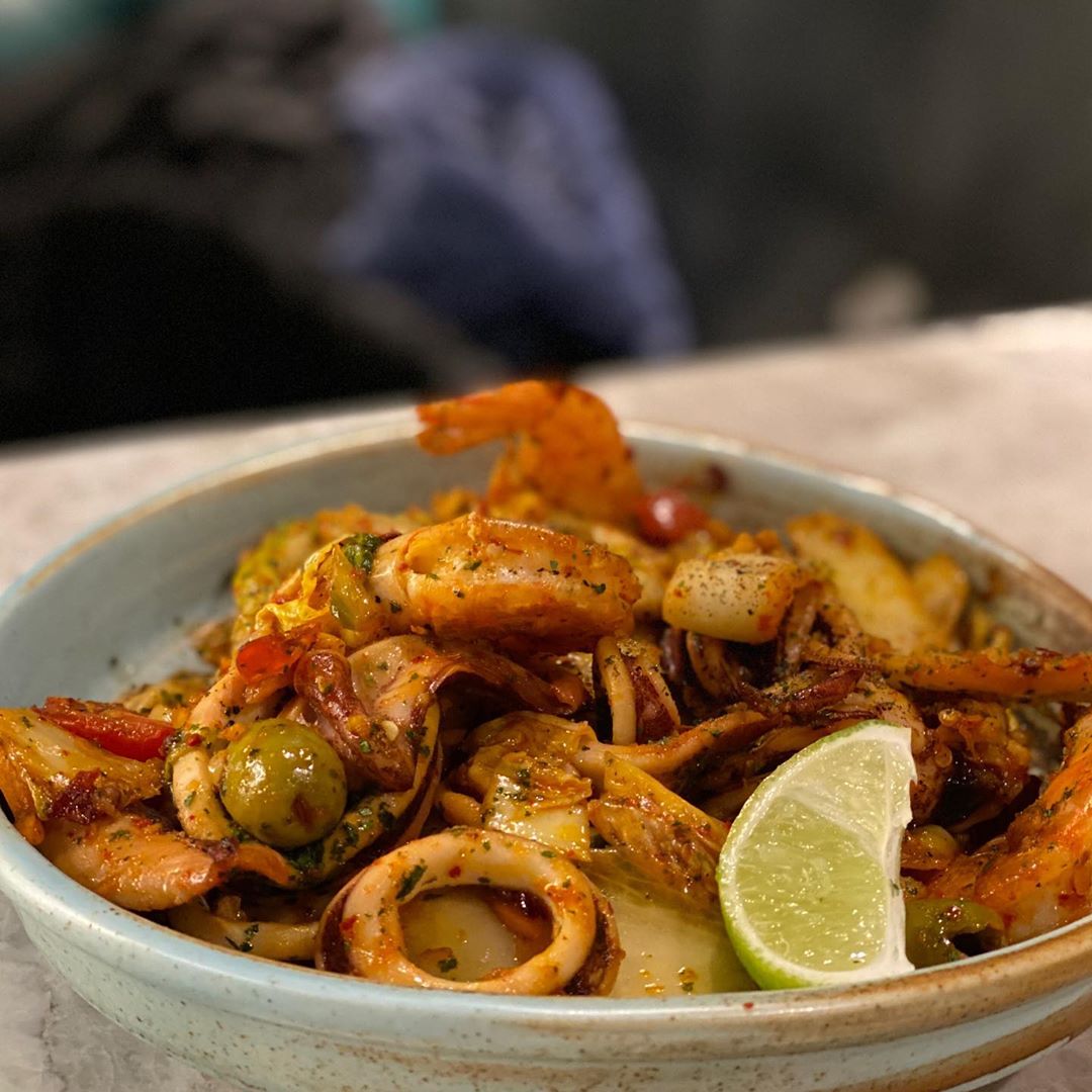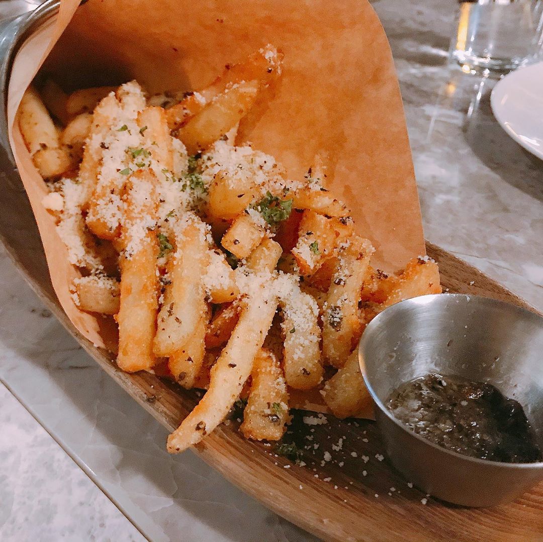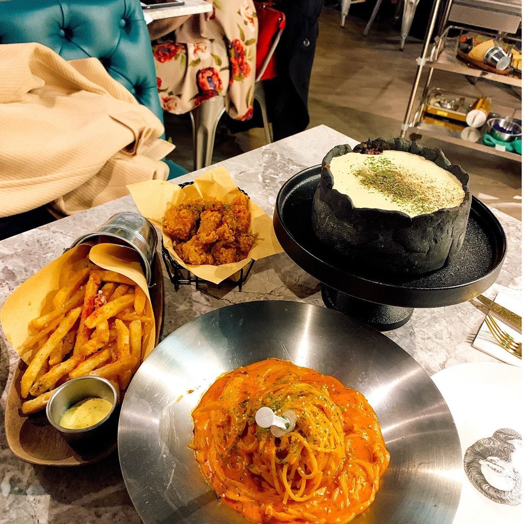 ▼韓義創意菜式還包括了「西西里泡菜炒海鮮」,份量充足的肥美大蝦佐酸酸辣辣的泡菜,不搶位又能吃到蝦子鮮美。店內下酒必點的還有「蜂蜜薯條」,店家特製蒜味蜂蜜醬搭配,吃一口就停不下來!