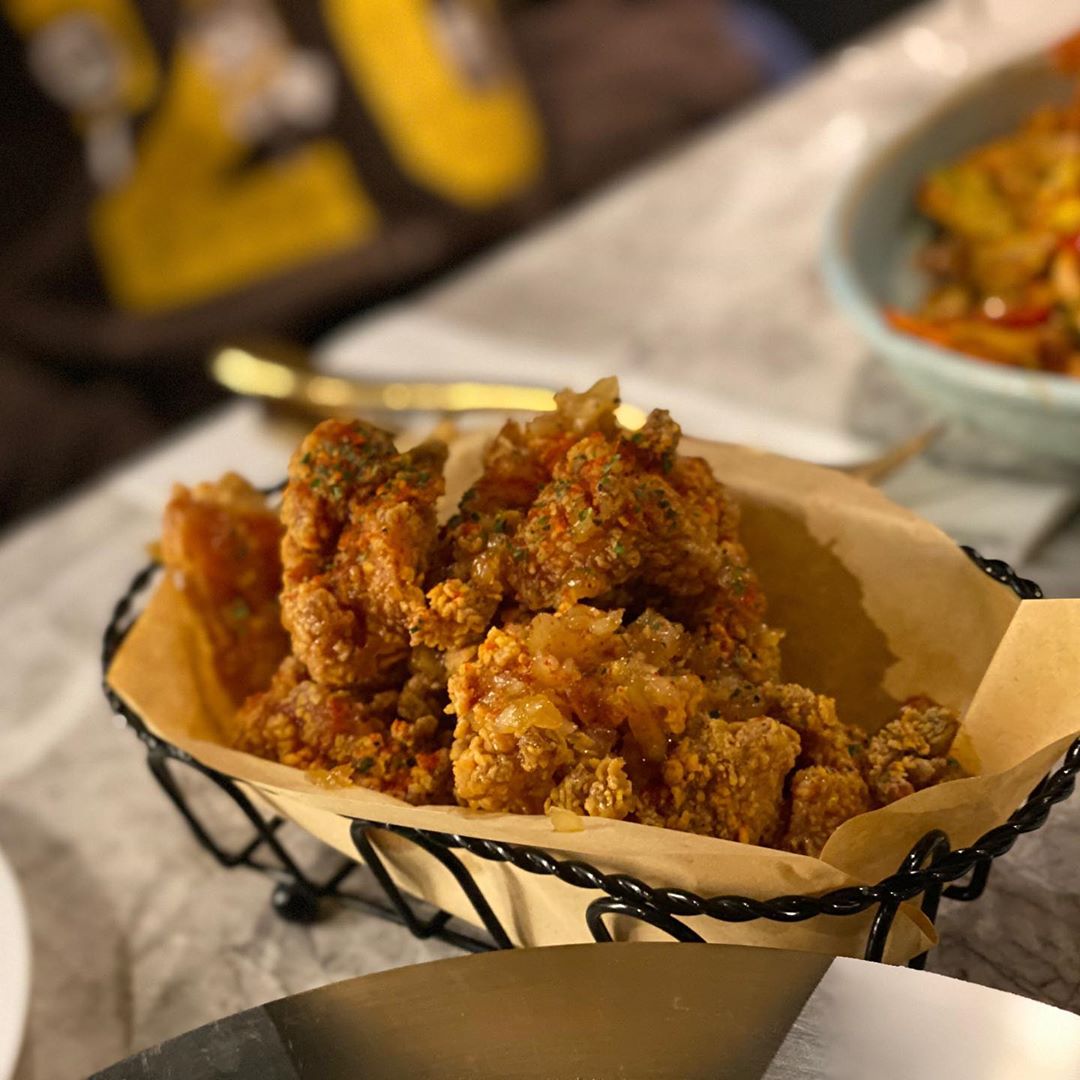 ▼來到韓式餐酒館,當然也少不了韓國的招牌料理囉!經典的韓式炸雞就要點一份跟好友一起開嗑,雞翅份量澎湃,點雙拼可一次享用塔塔醬七味粉跟起司粉巴沙米克醋兩種風味;炸雞則有店家秘製的蜂蜜奶油口味,甜甜鹹鹹的口感最涮嘴!
