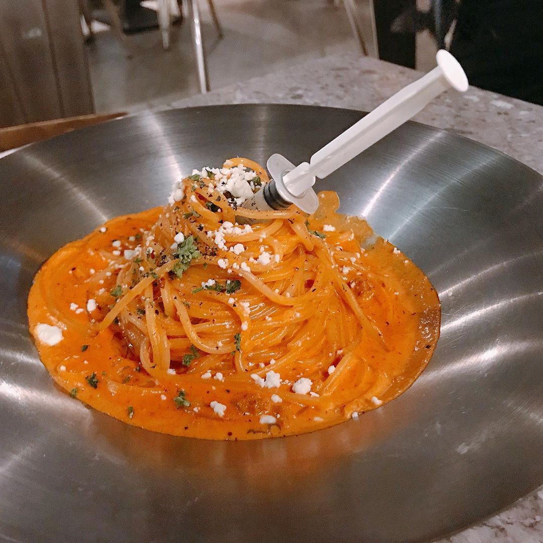 ▼店內還有一道特色菜式「春川粉紅醬豬五花義大利麵」,是將韓國最常見的春川辣醬與鮮奶油融合在一起,一道菜嚐到韓義兩種風格的口感,在辣味之下又顯得極為滑順。