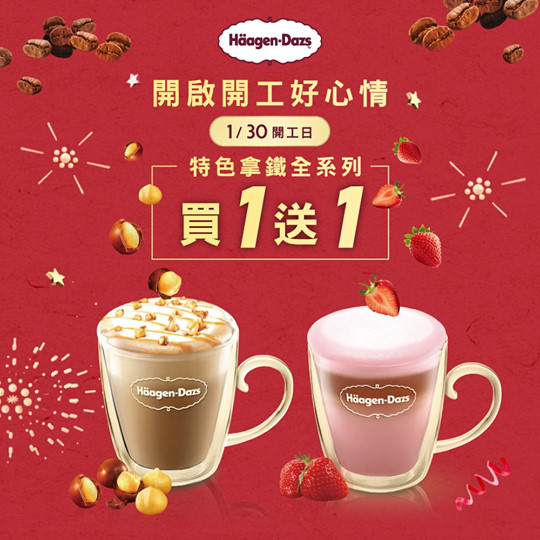 ▼Häagen-Dazs來撫慰大家的心靈囉,開工日只要在活動網站參加活動,完成遊戲就能領取「特色拿鐵買1送1」優惠,趕快約同事們一起喝起來!
