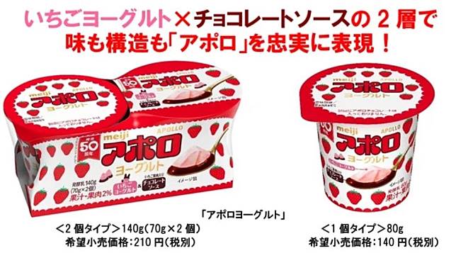 2020年01月31日草莓控們在哪裡~~最近日本明治在推出一款全新商品「阿波羅巧克力優格」(アポロ ヨーグルト),香濃的草美優格搭配底下邪惡的巧克力醬,裡面還藏著草莓果肉,當你用湯匙挖起來時,看起來就像明治知名的「阿波羅草莓巧克力」一樣!光是看圖片,口水都要流下來了啦~~
