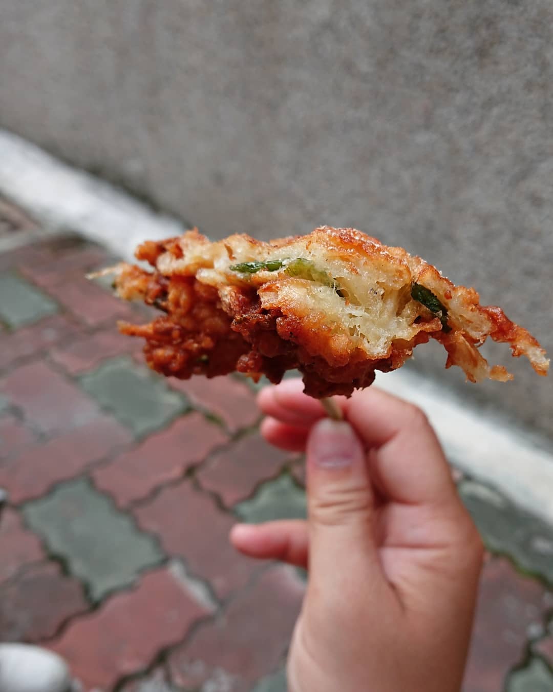▼一口咬下,鹹、酥、香與嫩滑口感並存,不會過乾、過燥,也可以淋上店家特製的醬汁一同享用,嚐起來微微濕潤的口感更增添層次,比韓式煎餅還要美味!