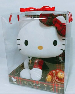 ▼「Hello Kitty 傳情絨毛組」售價,499元,高達35cm Hello Kitty玩偶,2020年格紋新款,附贈金莎巧克力小捧花,擺在家裡收藏也很可以!