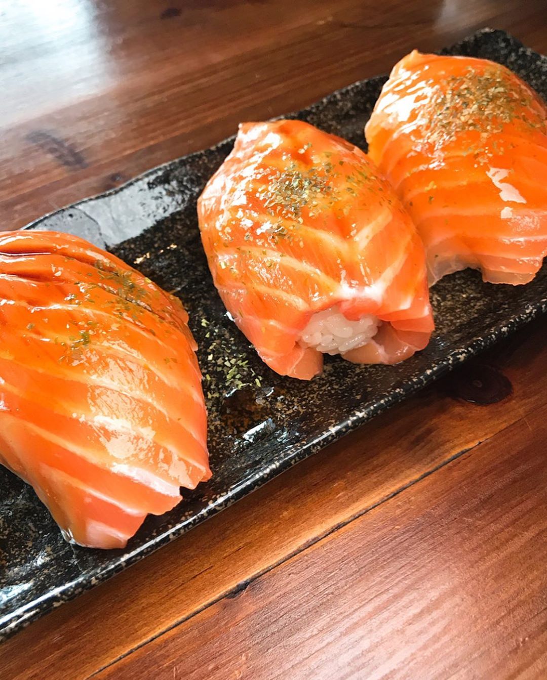 ▼大片厚切的鮭魚肉,吃起來肉質紮實,帶有魚肉本身的鮮甜油脂,搭配清爽的壽司飯,與獨特的醬汁形成多層次豐富滋味。不過要注意這道握壽司因為是限量供應,最好先電話向店家詢問、預訂,才不會撲空唷~