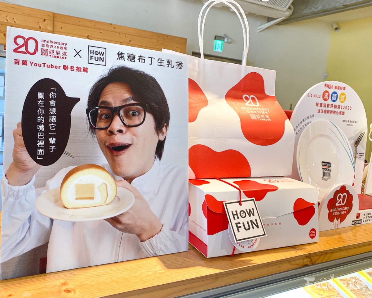 2020年02月12日生乳捲界的龍頭「亞尼克」今年已經邁向地20年,為了慶祝20週年,亞尼克結合品牌熱銷甜點「烤布蕾」以及「焦糖慕斯」,推出週年限定新品「焦糖布丁生乳捲」,特別邀請百萬Youtuber「HOWHOW」聯名推出新品,How哥都出來推薦了,怎麼能不支持一下呢~