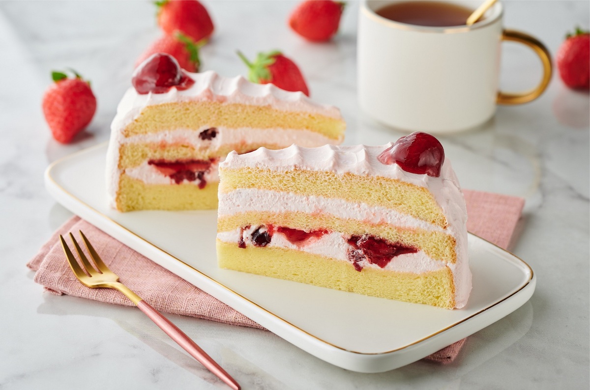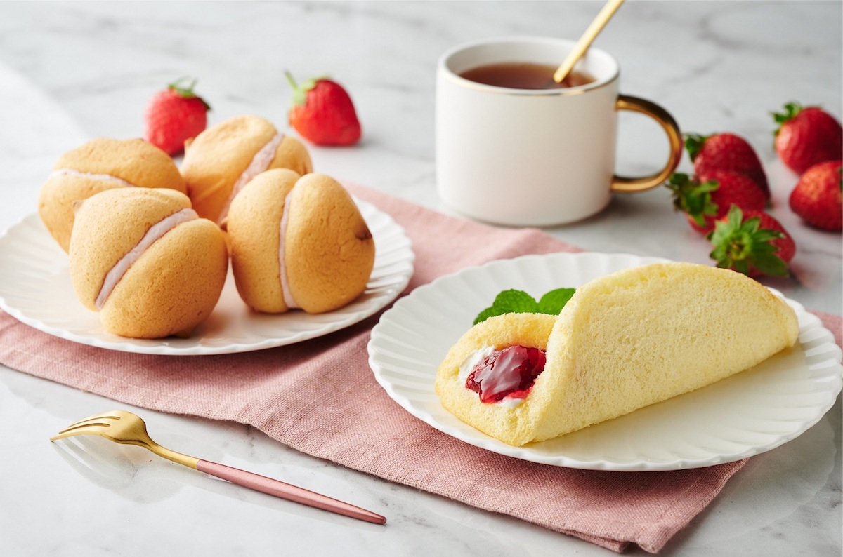 ▼草莓戚風蛋糕捲(新品):嚴選草莓醬與蜜漬草莓,搭配口感鬆軟的戚風蛋糕及鮮奶油,香氣十足;草莓空氣蛋糕(新品):蓬鬆Q彈的空氣蛋糕,內夾微酸微甜草莓奶餡,美味又不失清爽。