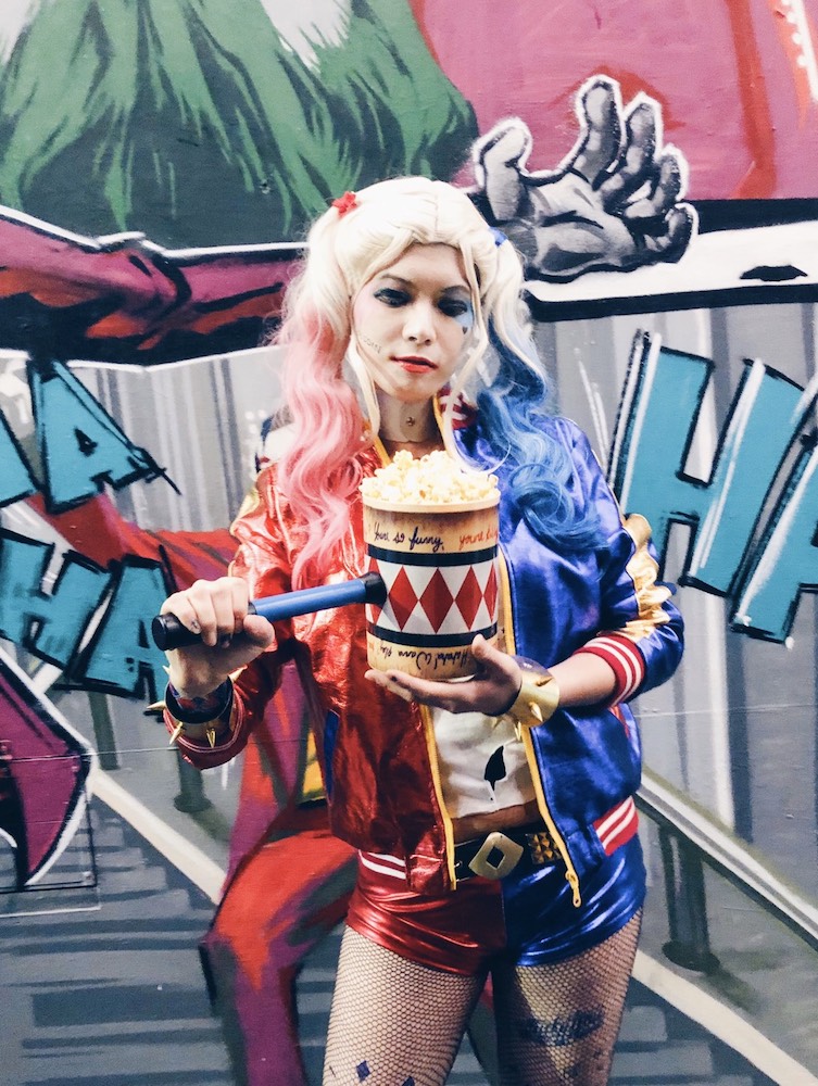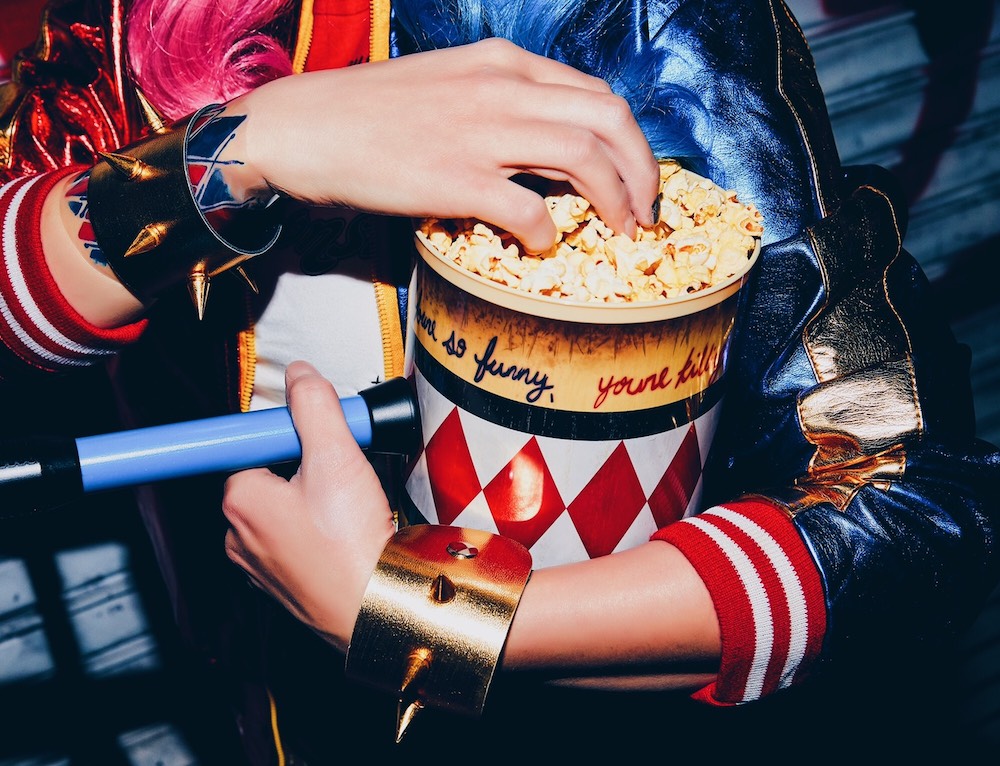 ▼哈利奎茵的服裝及道具擁有強烈的個人特色,讓全球粉絲也展開仿裝熱潮!威秀影城獨家推出「電影版大槌米花桶」,槌上神還原哈利奎茵經典台詞,逼真造型不僅米花吃到飽,還能扮演哈利奎茵帥氣模樣!
